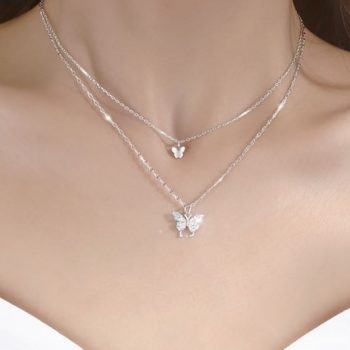 victoria’svogue 2021 925 Sterling Silver Double Butterfly Necklaces & Pendants For Women High Quality Sterling-silver-jewelry Chain
