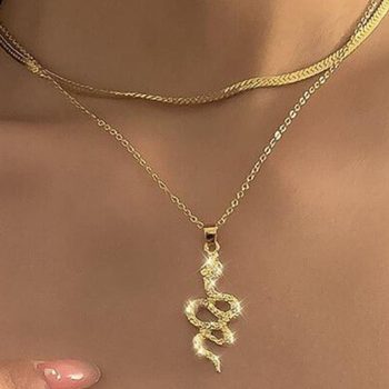 victoria’s vogue New Vintage Heart-shaped Human Head Coin Snake Pendant Necklace For Women Fashion Gold Punk Faux Pearl Thick Chain Jewelry Gift