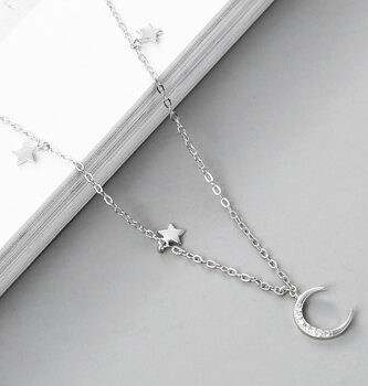 Victoria’s Vogue New Arrivals 925 Sterling Silver Star And Crescent Necklaces & Pendants For Women Hot Fashion Sterling-Silver-Jewelry