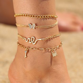 Victoria’s Vogue Bohemian Gold Butterfly Chain Anklets Set For Women Girls Fashion Multi-layer Anklet Foot Ankle Bracelet Beach Jewelry