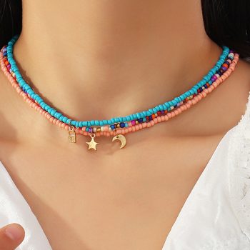 victoria’svogue 2021 New Bohemia Beads Heart Choker Multilayer Necklaces Womens Moon Star Butterfly Letter Pendant Chain Neck Party Beach Jewelry