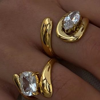 Victoria’s Vogue Stainless Steel Water Drop Shaped Large Zircon Rings 18K Gold Plated Opening Ring Women Waterproof Statement Jewelry
