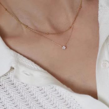 Victoria’s Vogue Stylish Shiny Zircon Double Layer Staniless Steel Waterproof Gold Plated Choker Necklace Stacked Fashion Jewelry Gift for Women