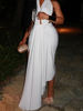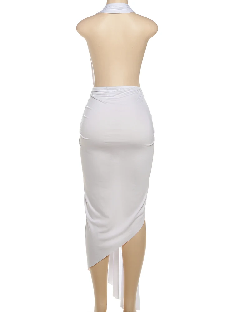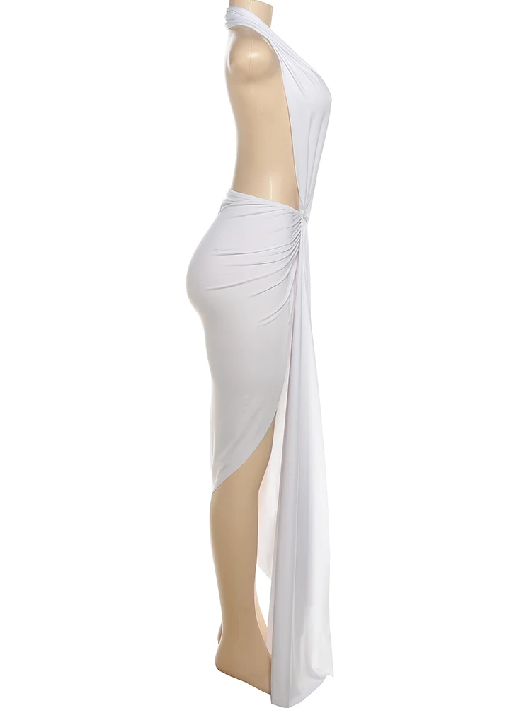 Victoria’s Vogue Irregular Draped Women Maxi Dresses Sexy Halter V-neck Backless High Split Bodycon Female Solid Simple Clubwear Vestidos
