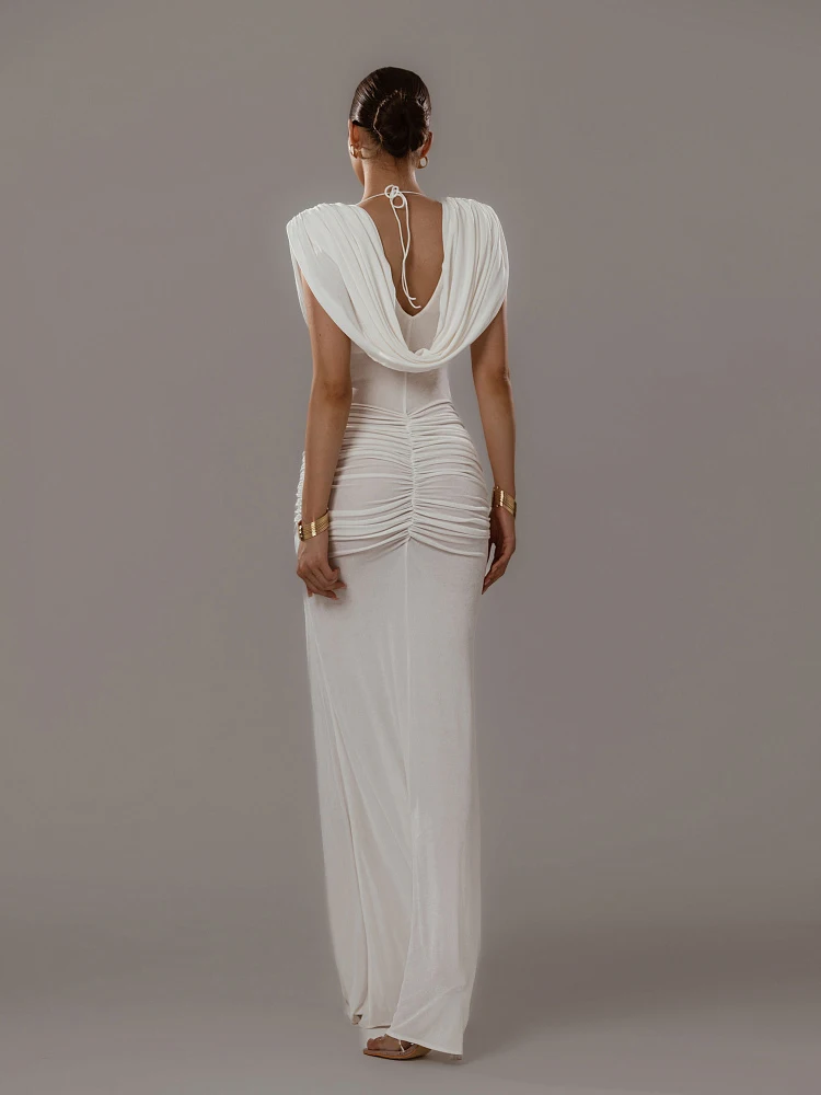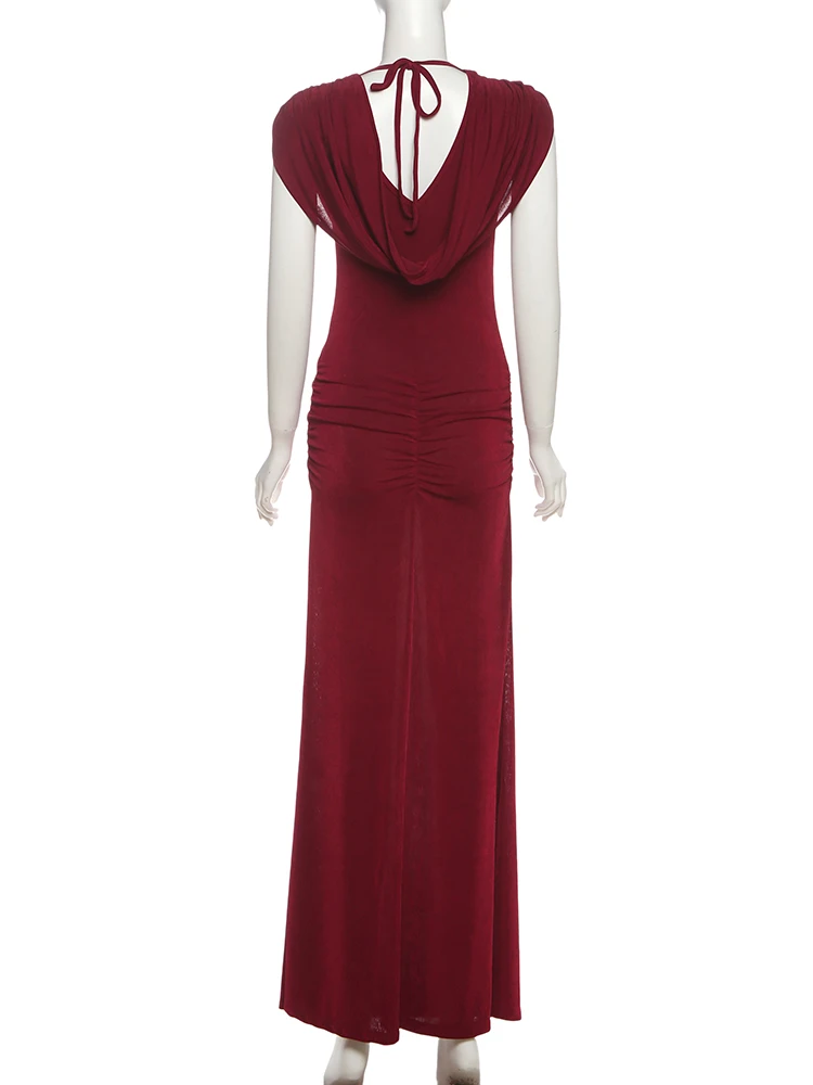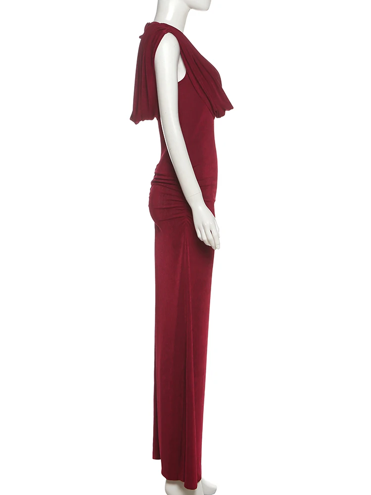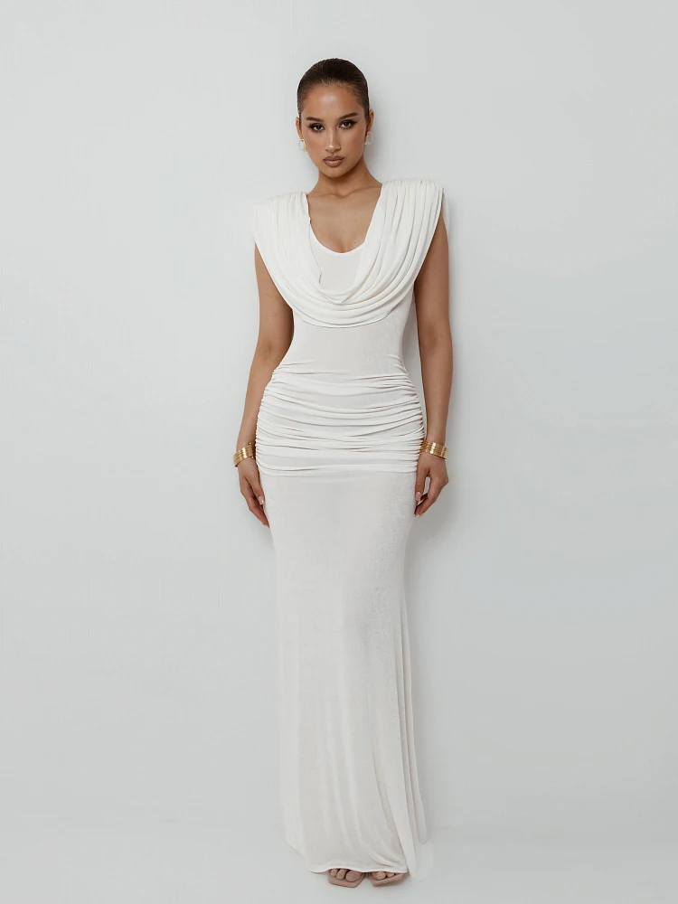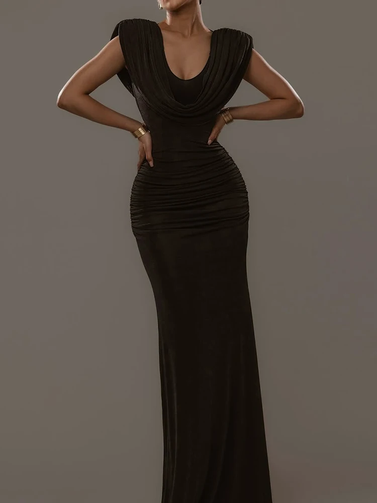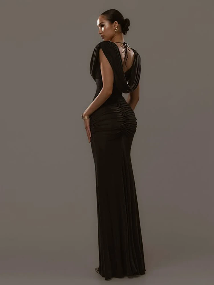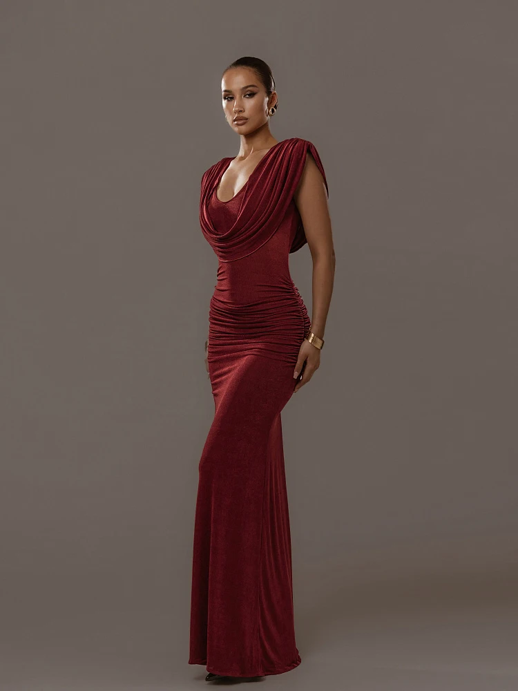 Victoria’s Vogue Swinging Neck Classic Women Maxi Dress High Street Solid Luxury Pleated Body-shaping Vestidos Female Evening Banquet Robe