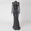 victoria’svogue 2021 Long Sleeve Stretch Sequin Maxi Dress Full Length Lining O Neck Evening Party Dress Bodycon Floor Length Long Elegant Dress