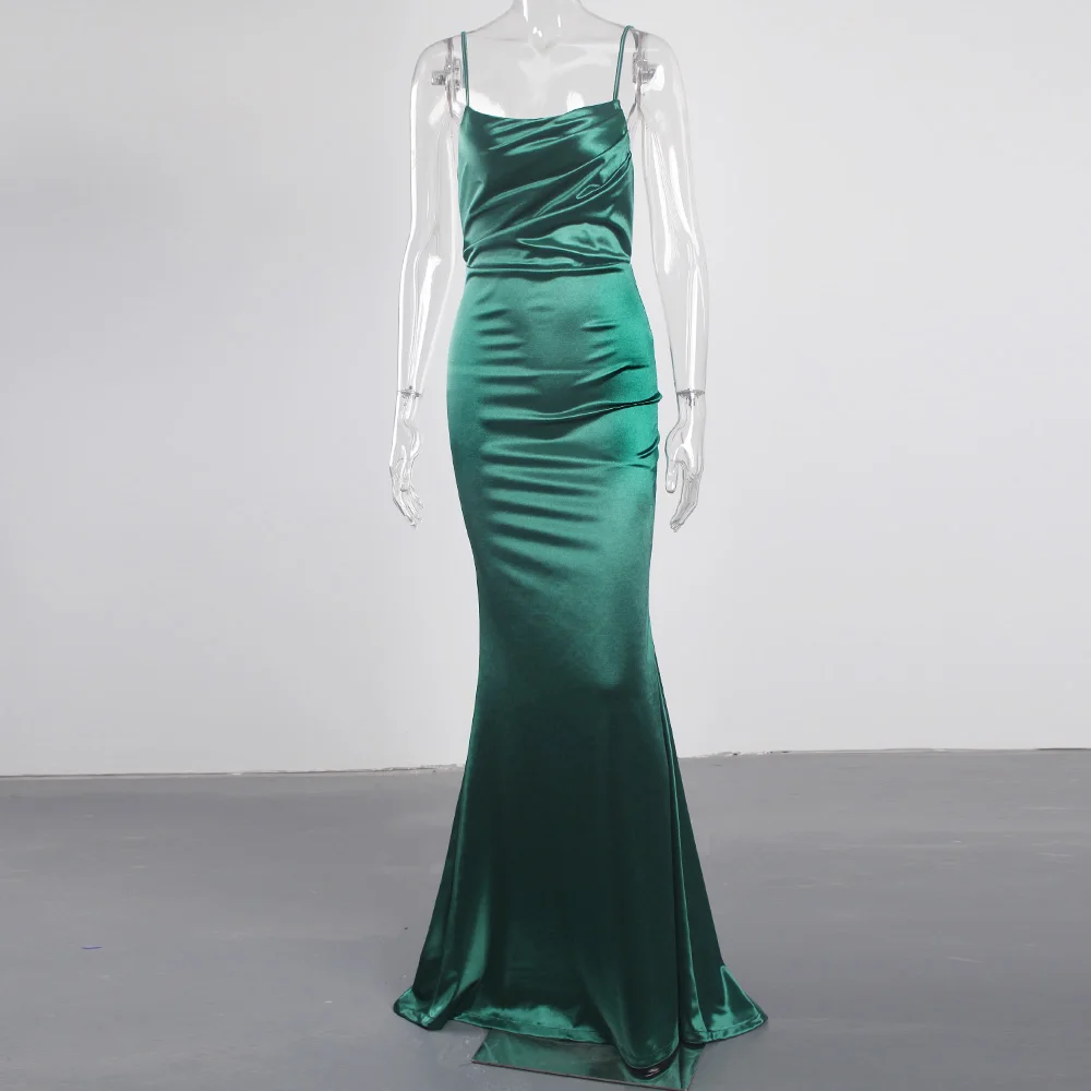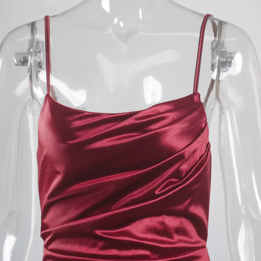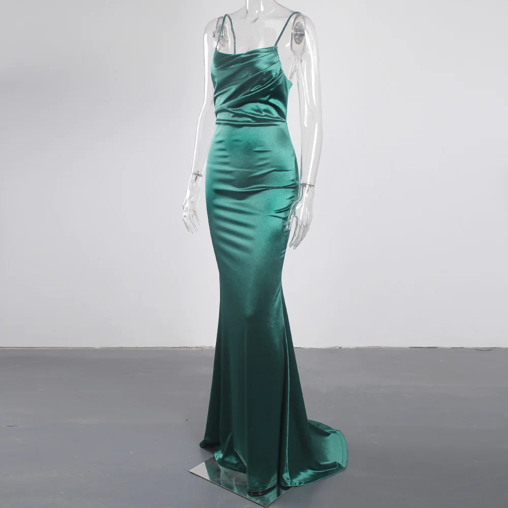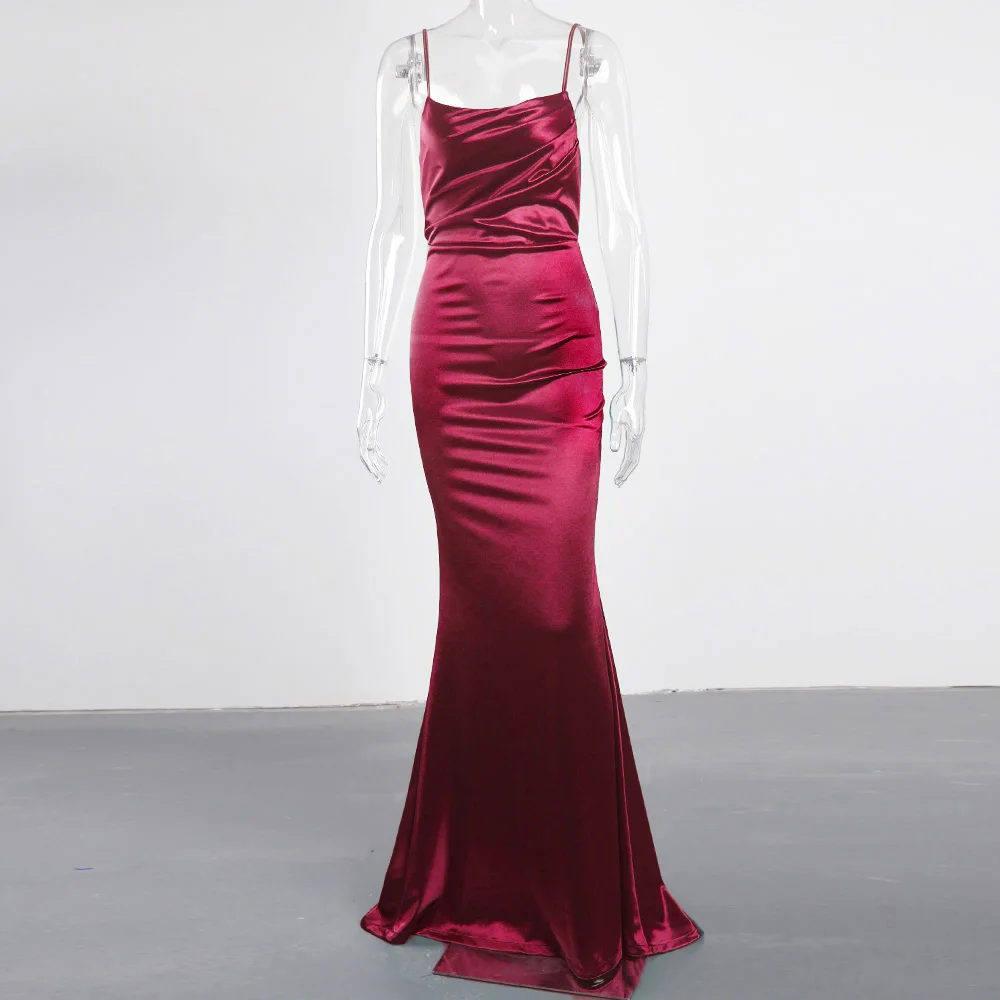 victoria’svogue 2021 Low Cut Pleated Sleeveless Maxi Dress Stretchy Satin Spaghetti Straps Backless Long Gown Evening Party