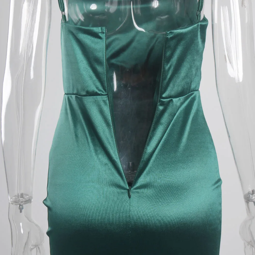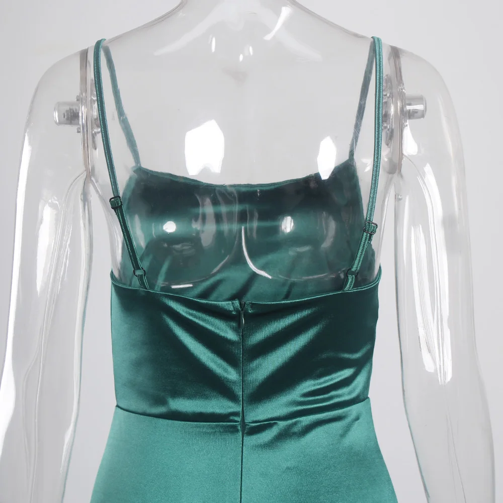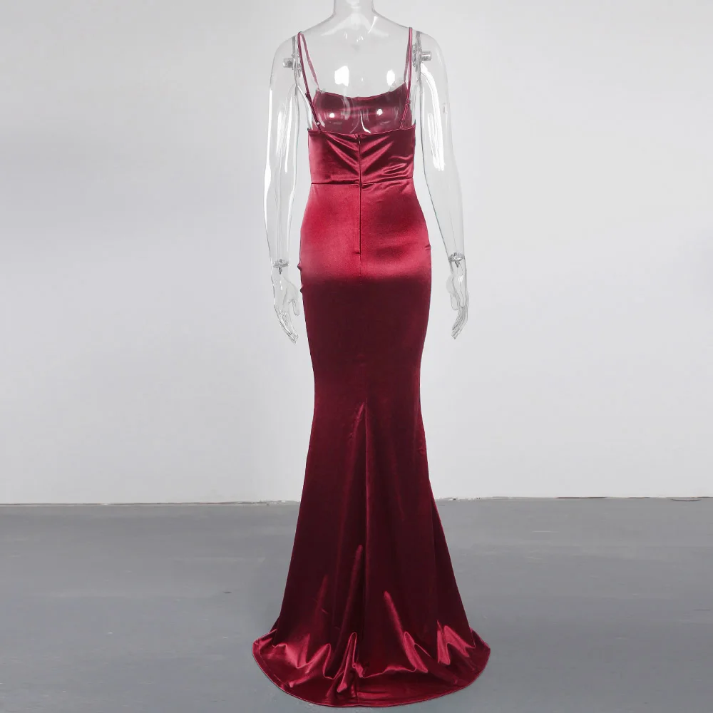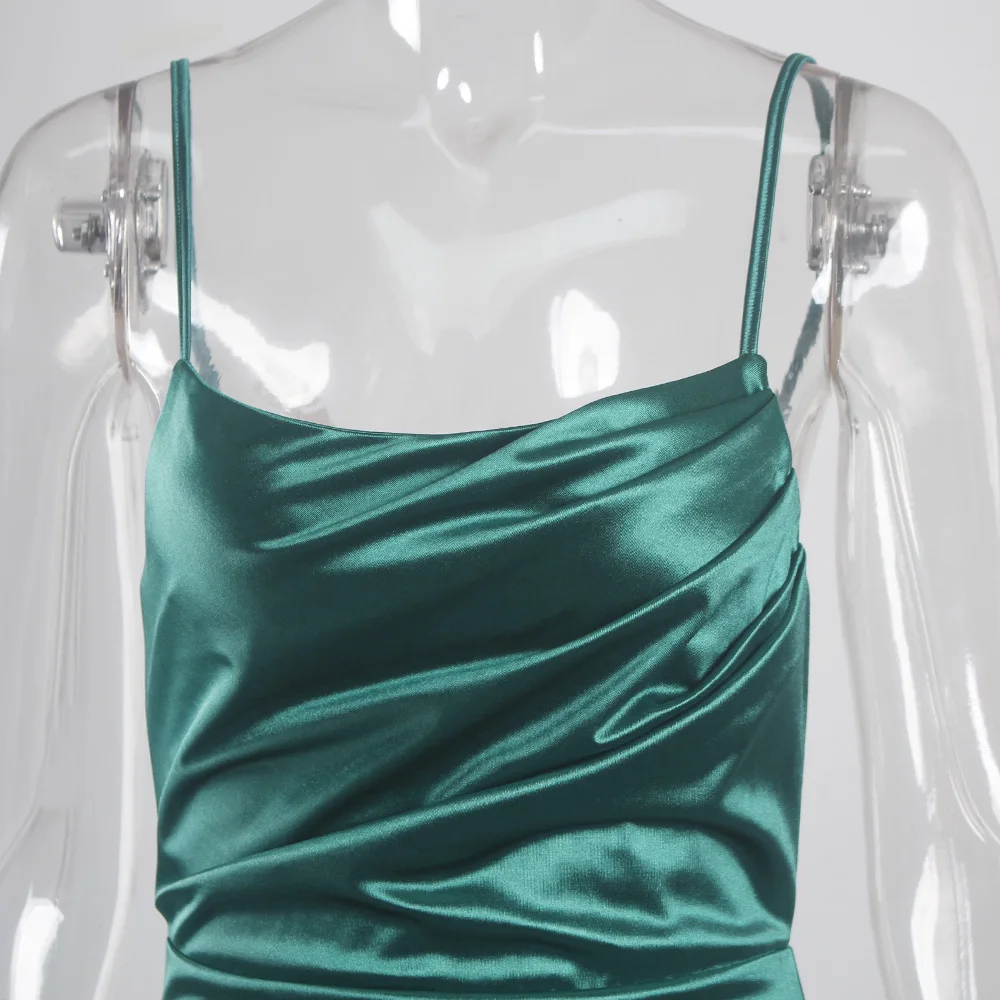victoria’svogue 2021 Low Cut Pleated Sleeveless Maxi Dress Stretchy Satin Spaghetti Straps Backless Long Gown Evening Party