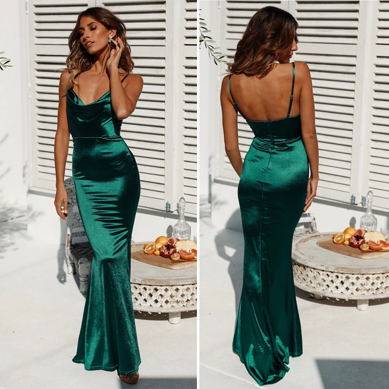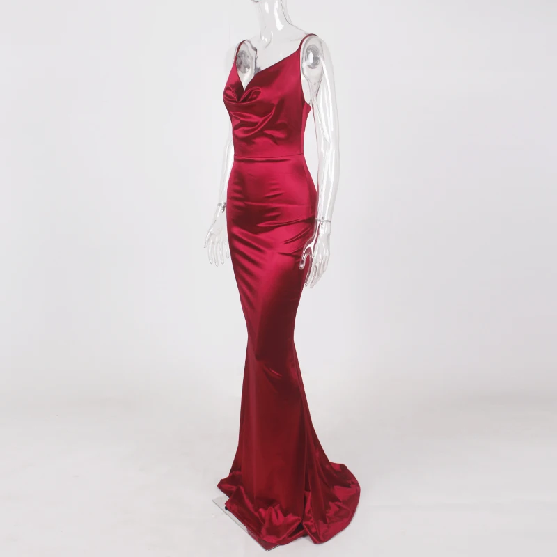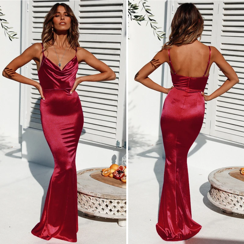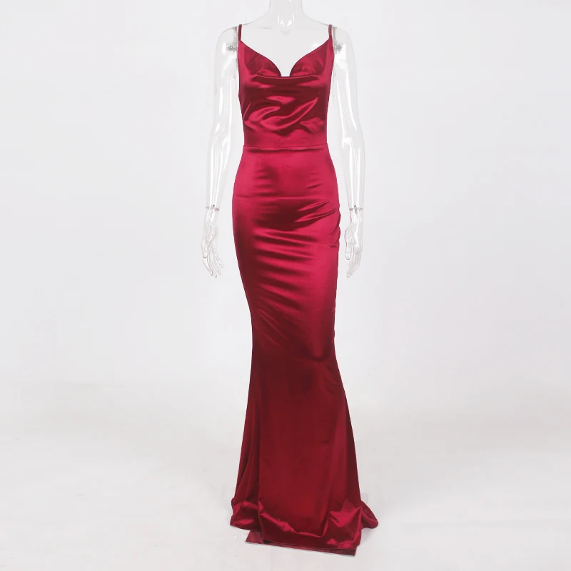 victoria’svogue 2021 Low Cut Strappy Satin Dress Backless Sleeveless Long Gown Maxi Dress Evening Party