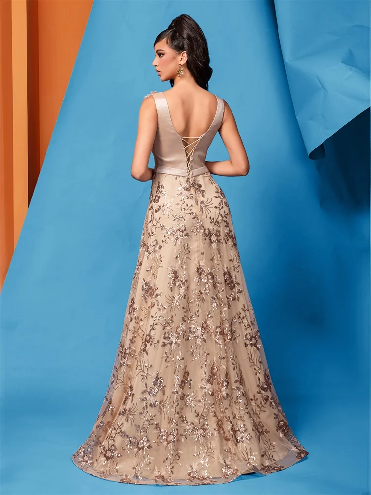 Victoria’s Vogue Elegant V-Neck Floral Evening Dresses Long 2025 Luxury Women Satin A-line Sleeveless Party Prom Cocktail Gowns