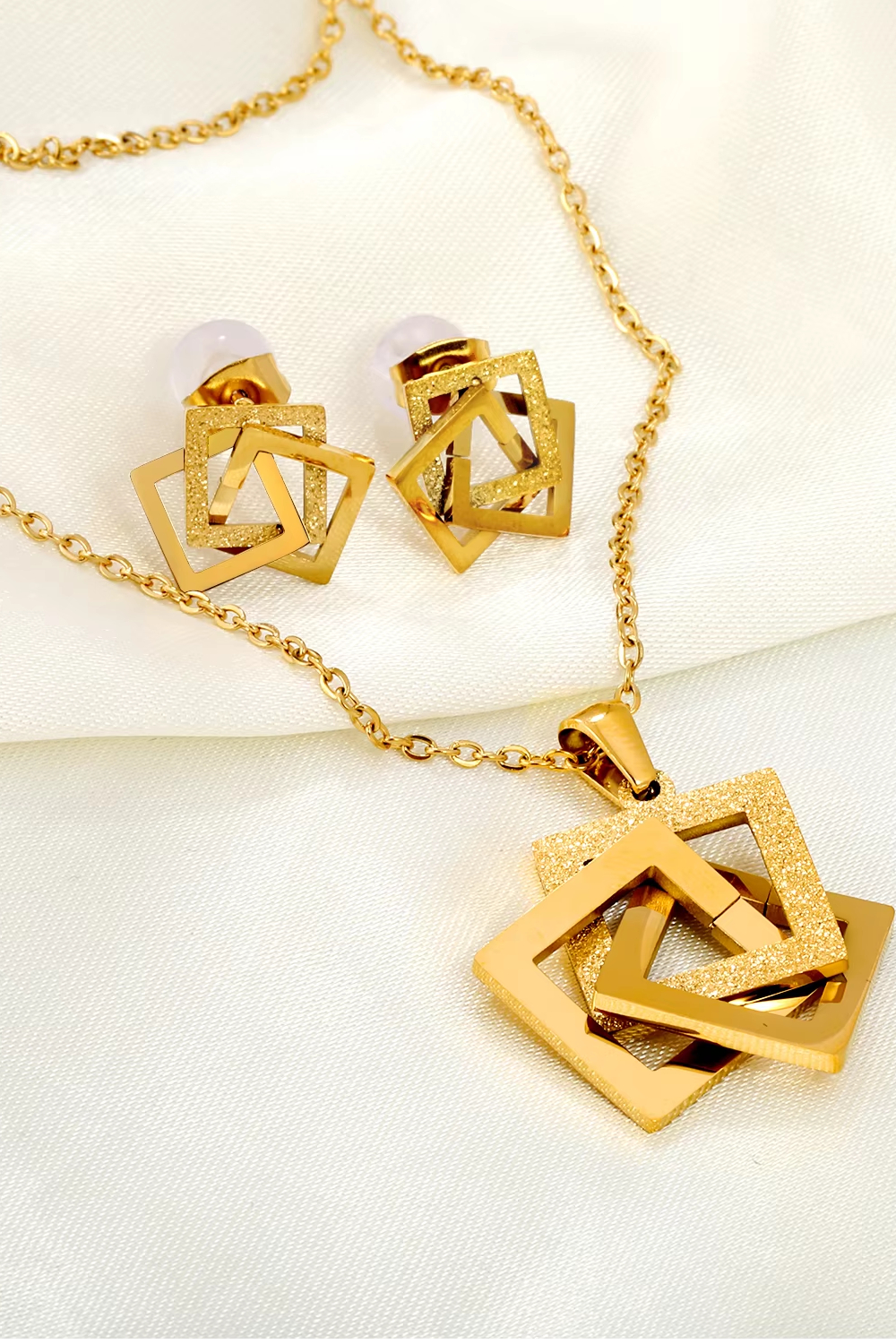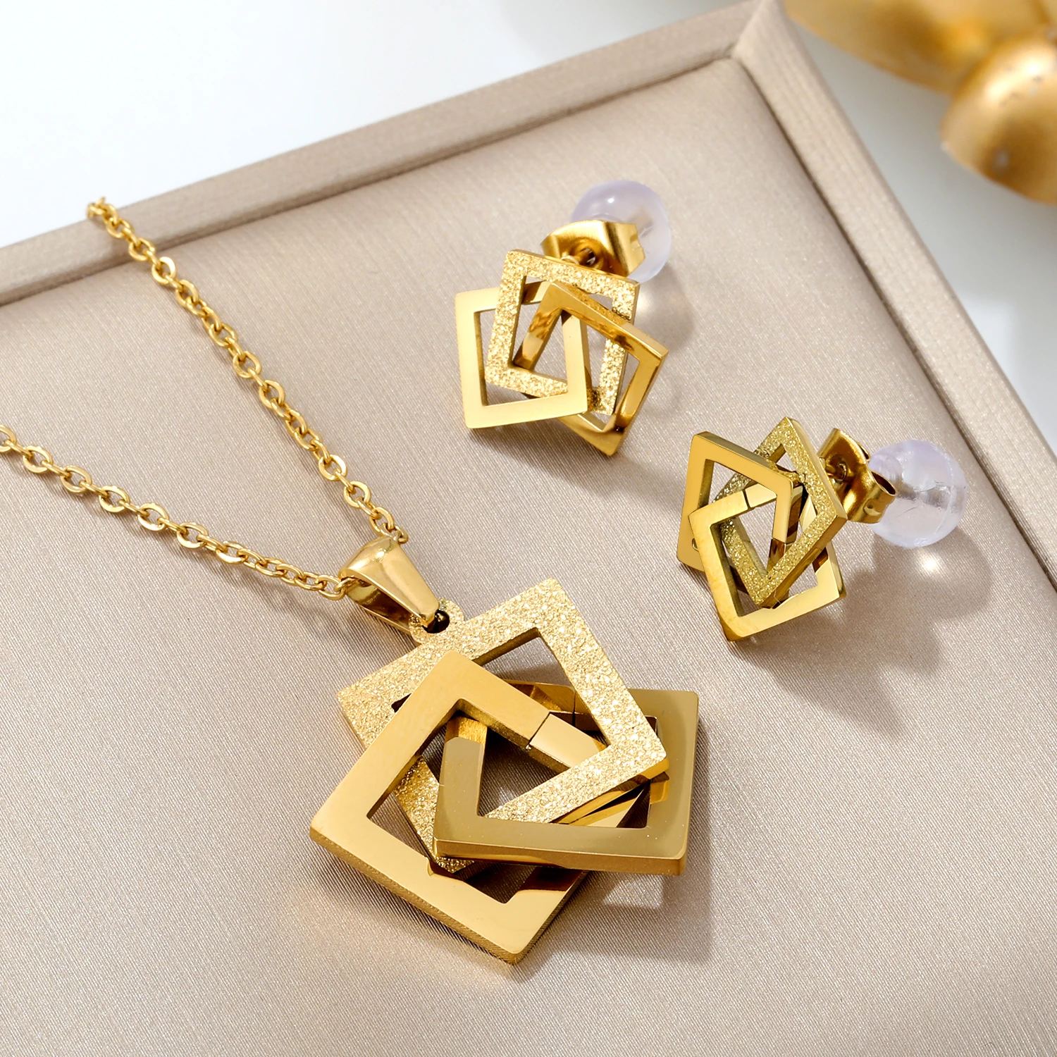 victoria’svogue Golden Waterproof Jewelry Sets Stainless Steel for Woman Wedding Party Accessorires Fashion Necklace Earrings Set