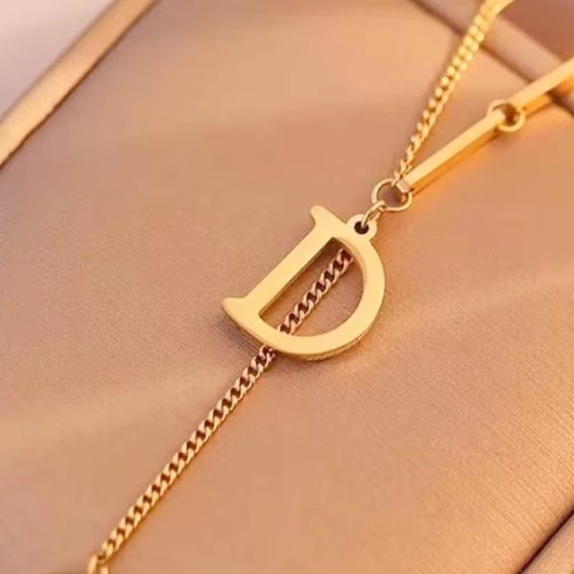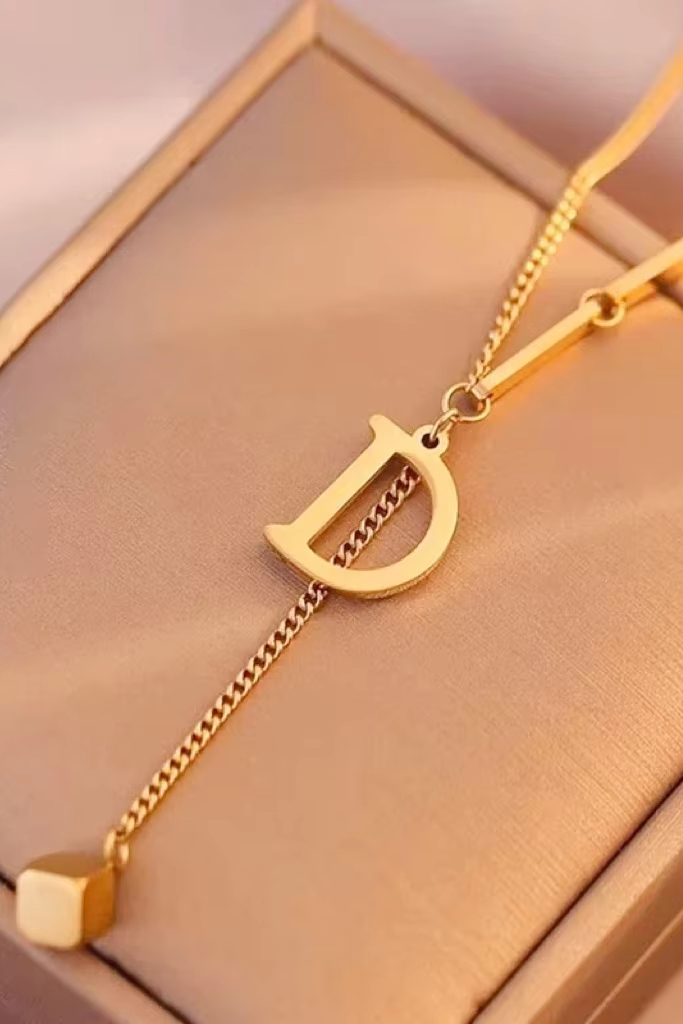 Victoria’s Vogue 24K 9999 Pure Gold real gold D Letter Women Necklace Geometric Square Pendant Clavicle Chain