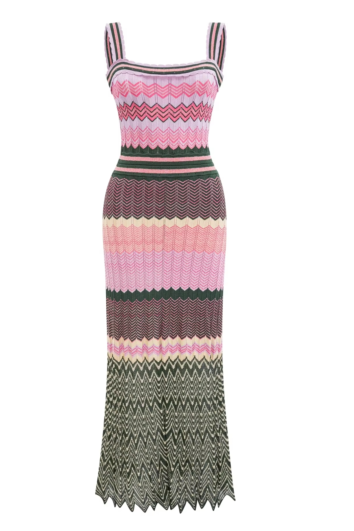 Victoria’s Vogue Luxury Brand Design Knitted Zigzag High Elasticity Color Sleeveless Long Maxi Dress Women Arab Africa Popular Boho Lady Skirt