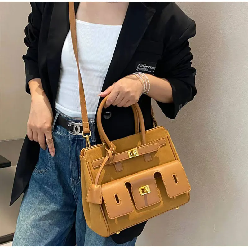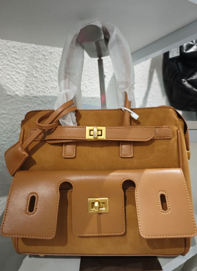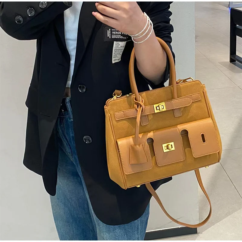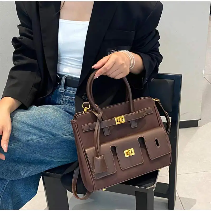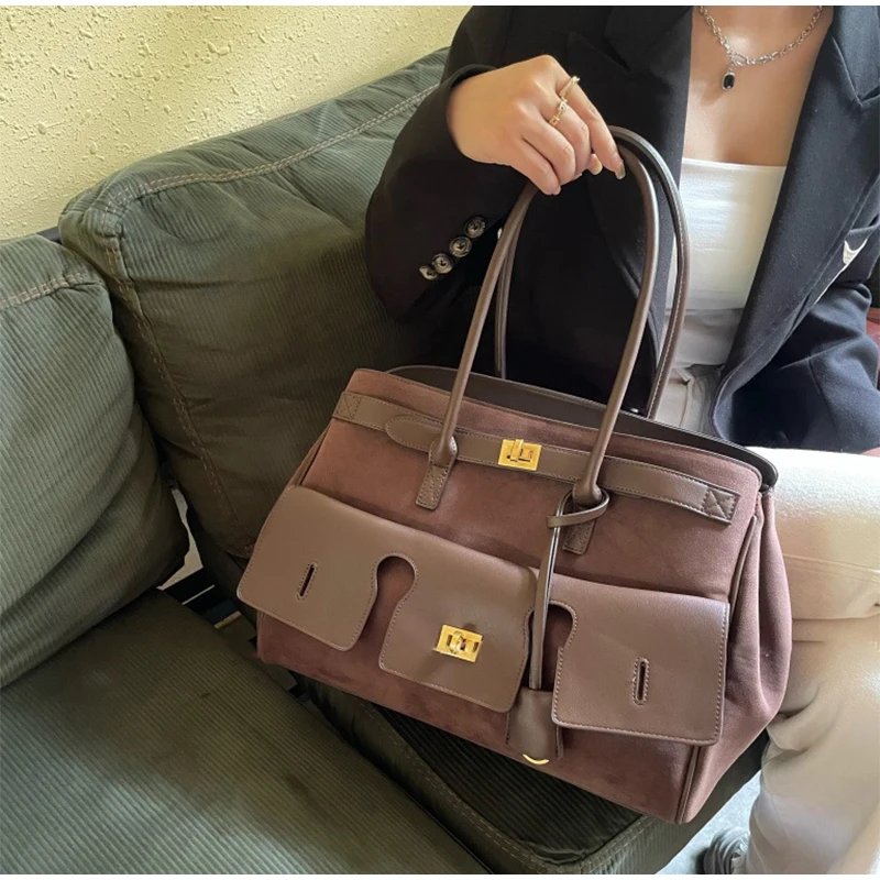 Victoria’s Vogue Luxury Genuine Leather Women’s Shoulder Bag Cowhide Large Capacity Designer Handbag Commuter Shopping Bag Lock Tote Bag Wing Bag