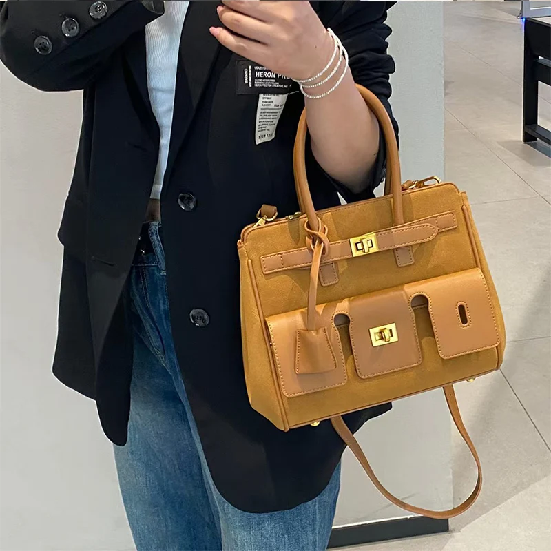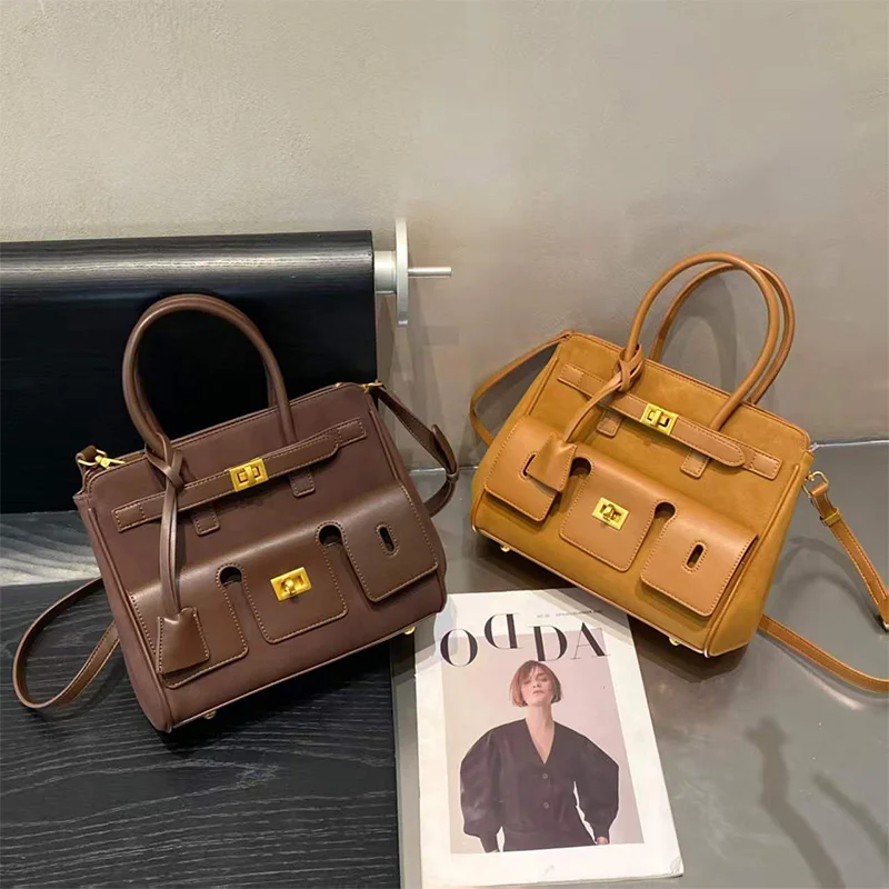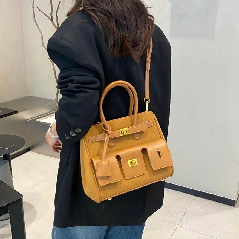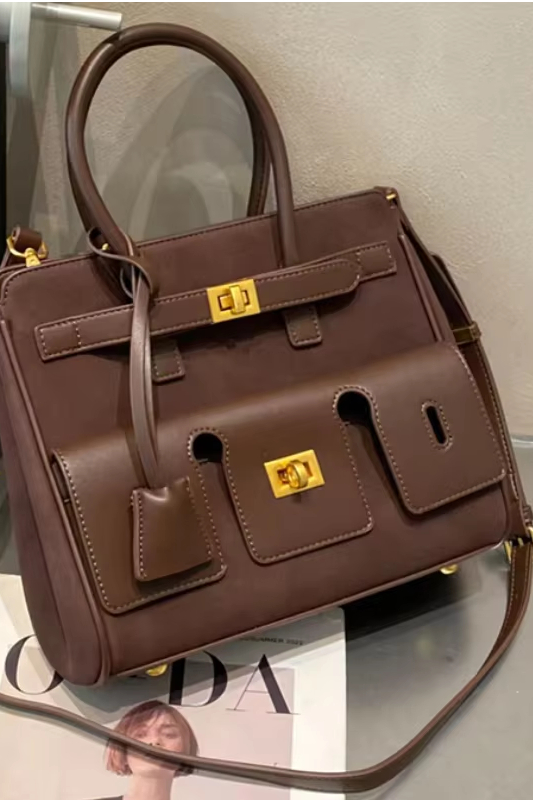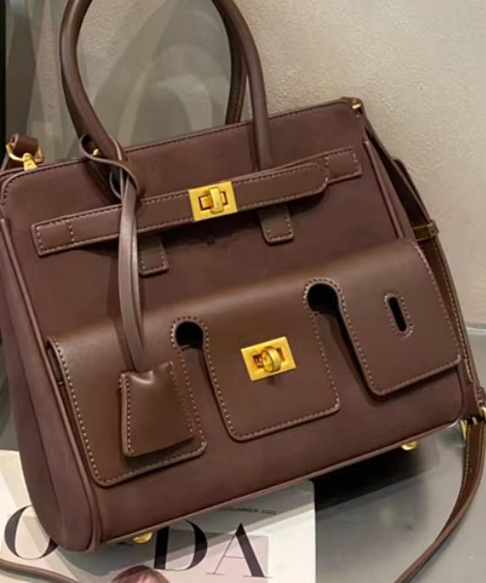 Victoria’s Vogue Luxury Genuine Leather Women’s Shoulder Bag Cowhide Large Capacity Designer Handbag Commuter Shopping Bag Lock Tote Bag Wing Bag