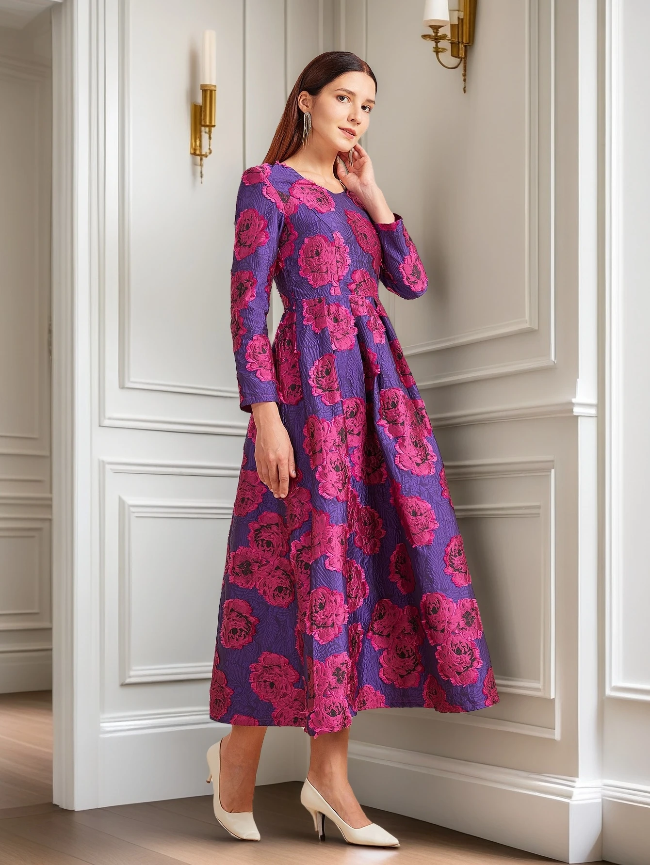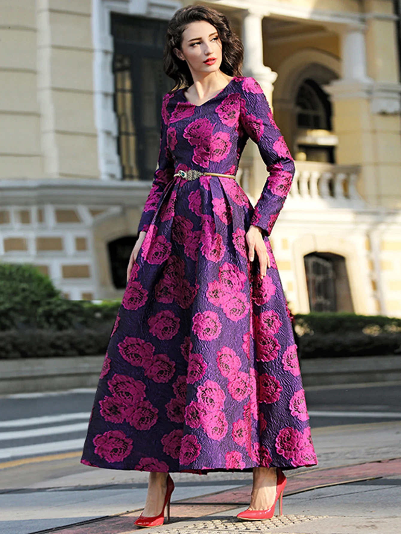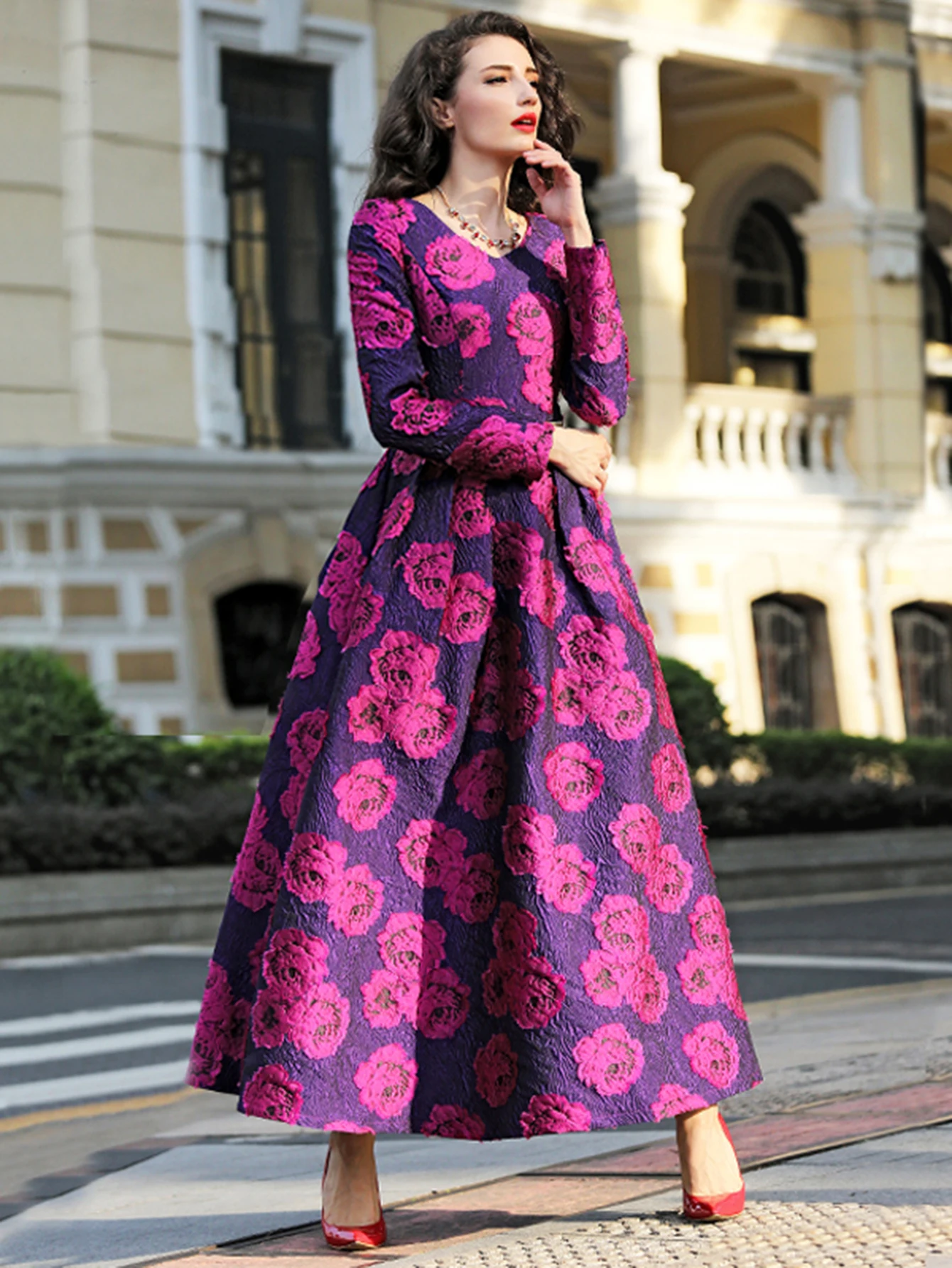 Victoria’s Vogue Luxury Long Jacquard Dress for Women Maxi Autumn Winter Party Dress Boho Floral Fashion Evening Clothing Vintage Robe