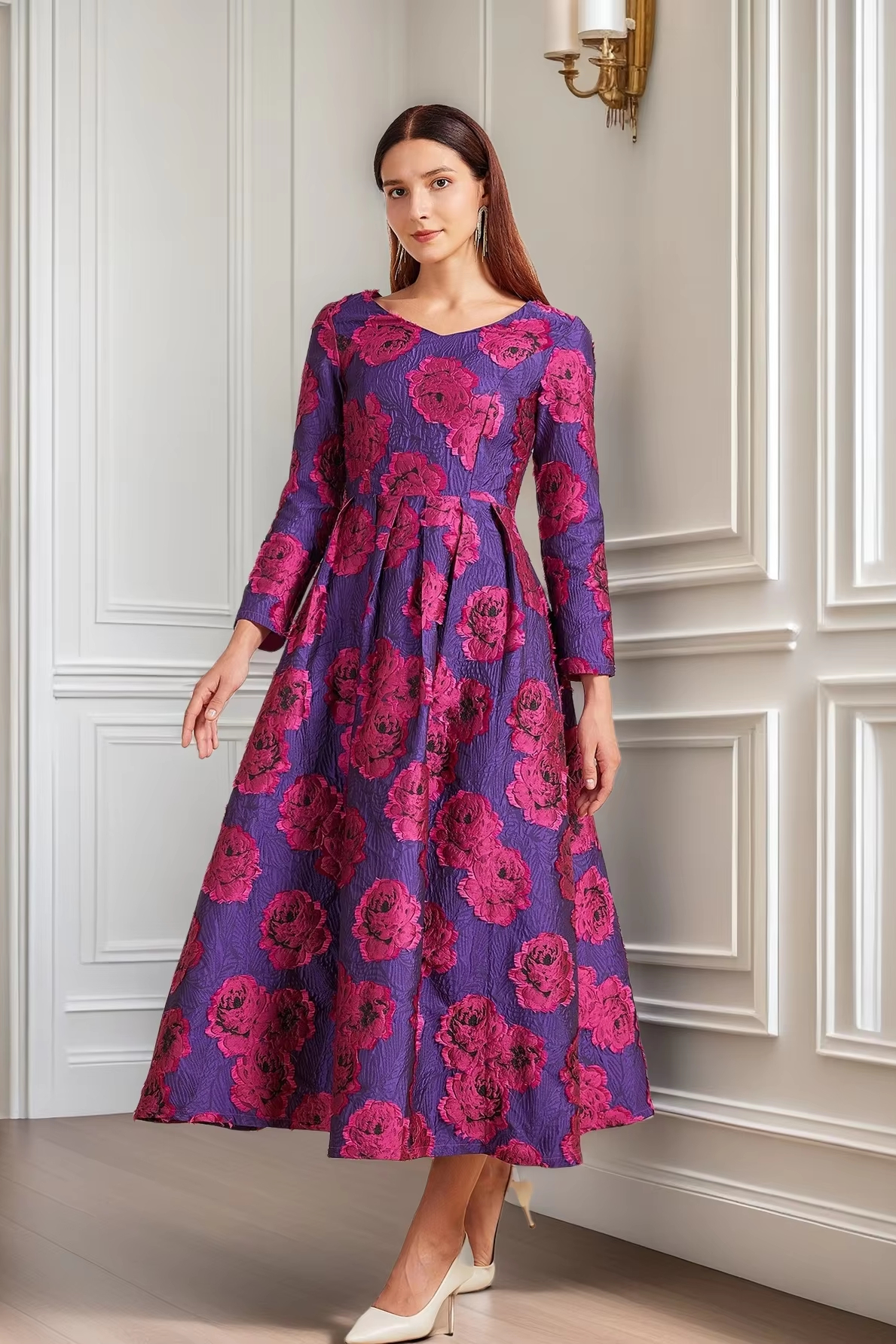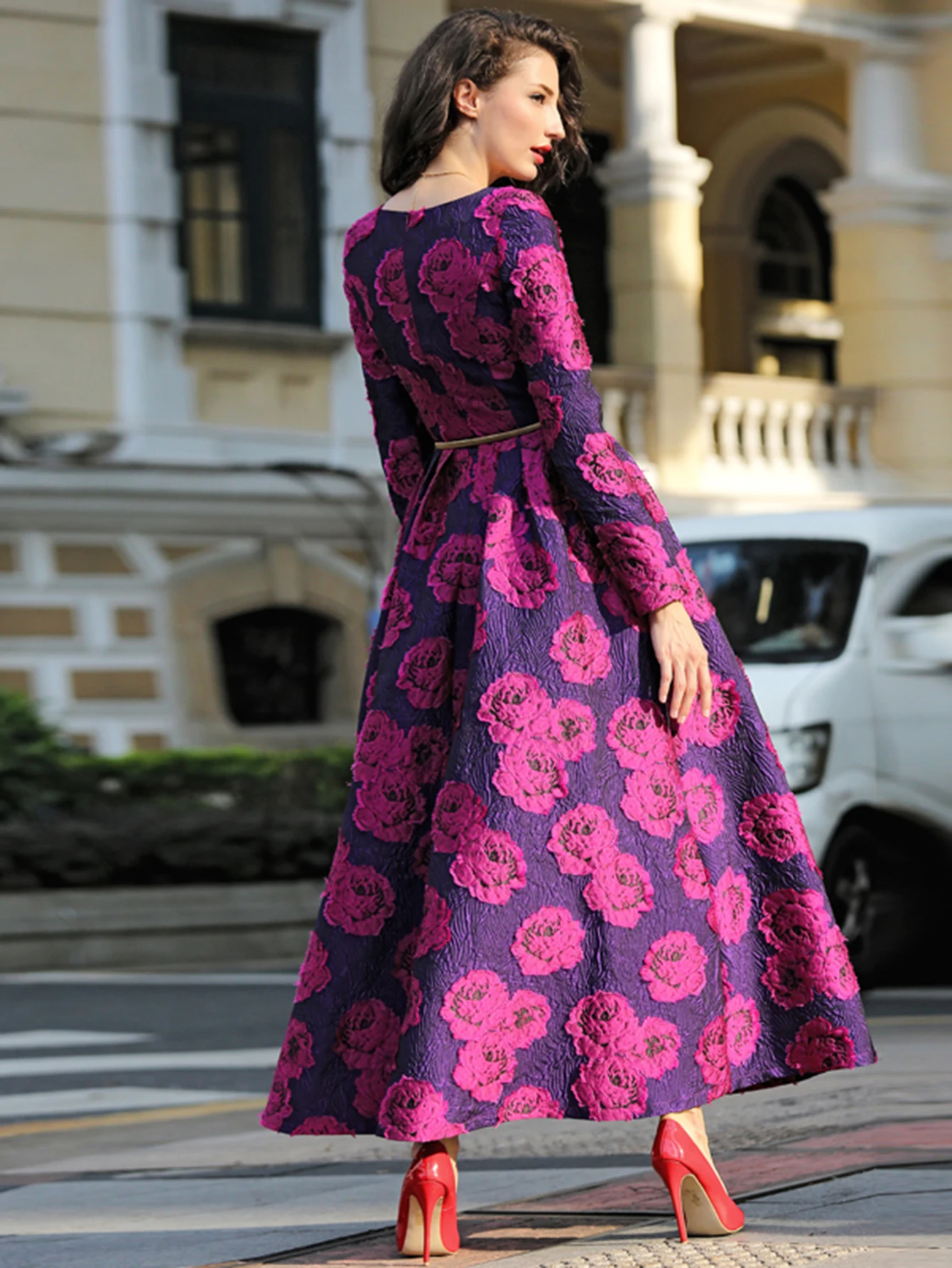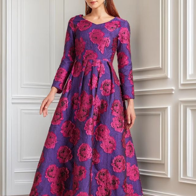 Victoria’s Vogue Luxury Long Jacquard Dress for Women Maxi Autumn Winter Party Dress Boho Floral Fashion Evening Clothing Vintage Robe