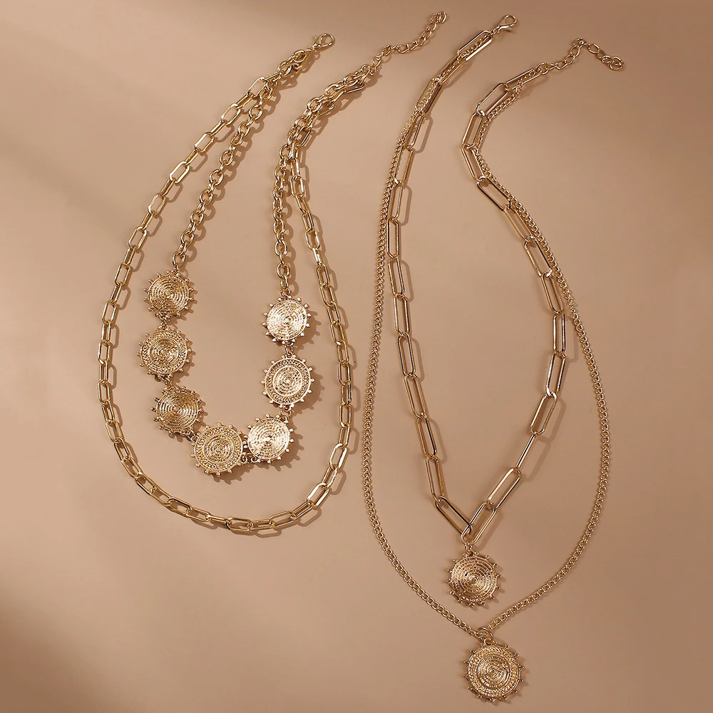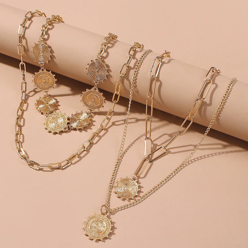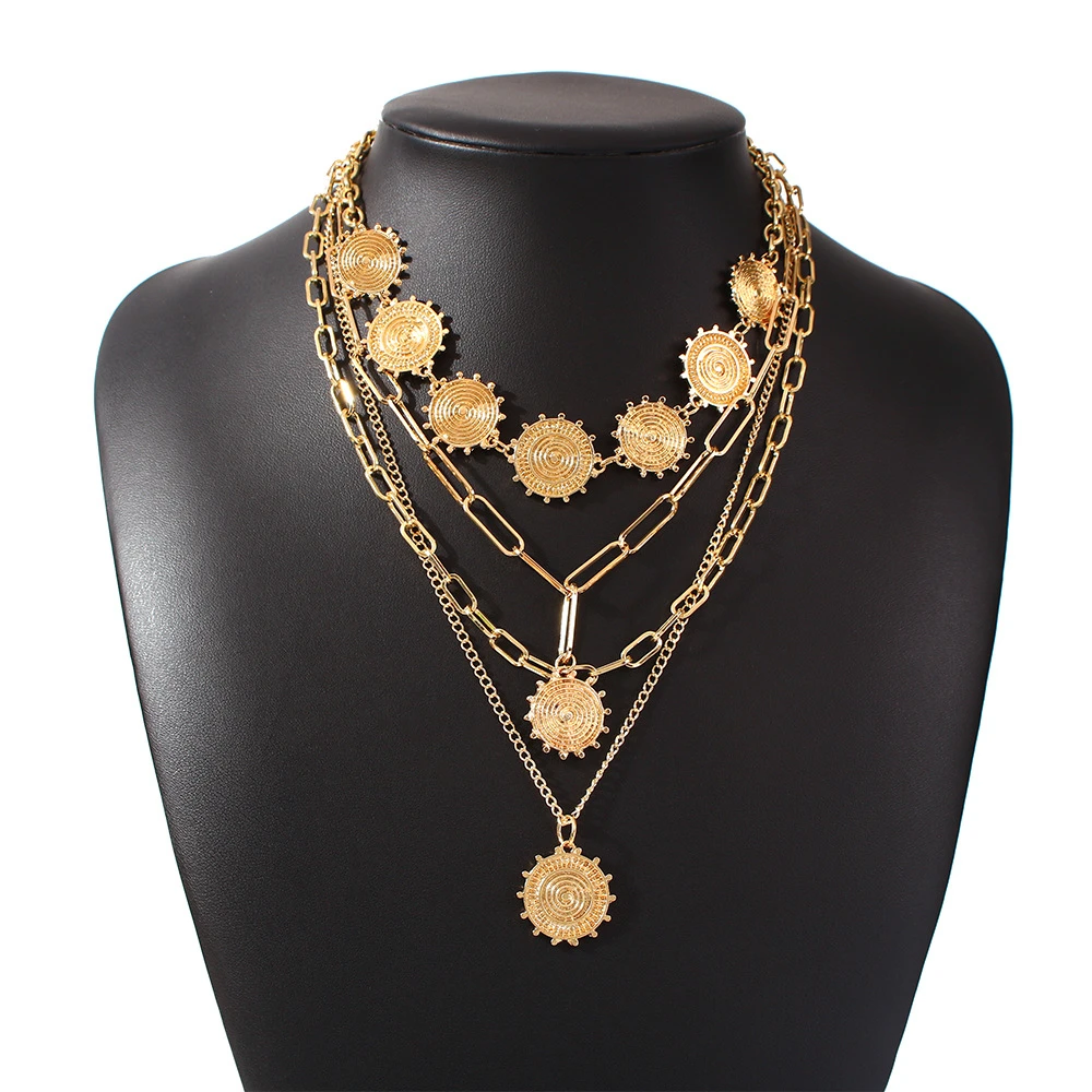 victoria’s vogue 2021 New Gold Luxury Sun Disc Pendant Necklaces For Women Multilevel Female Fashion Lucky Necklace Jewelry Wholesale