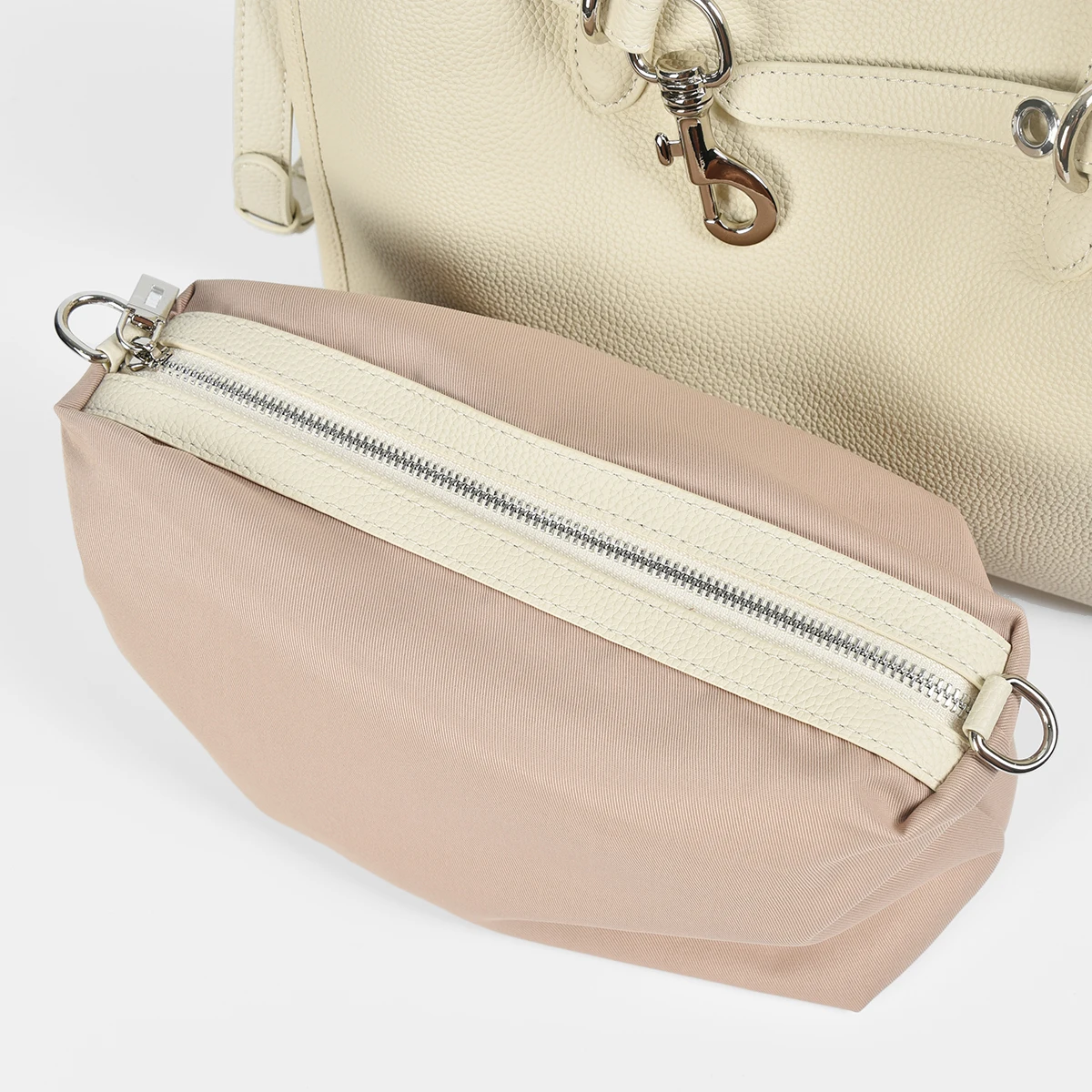 This bag has a very large internal capacity. It comes with a removable inner pouch that can be taken out and used separatel.