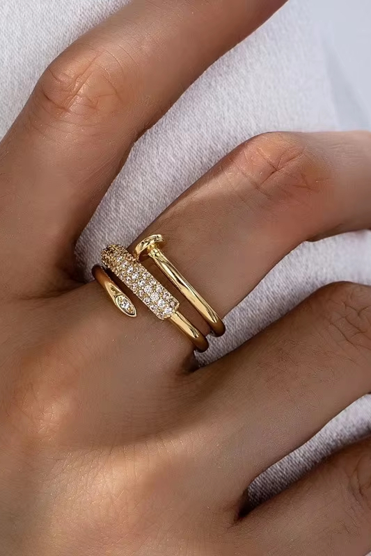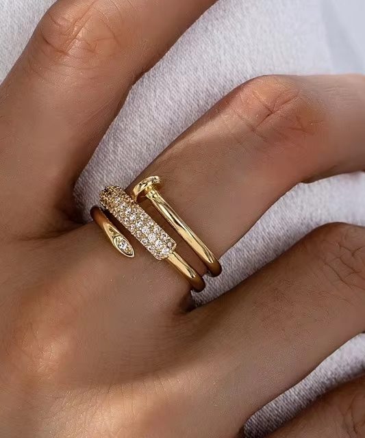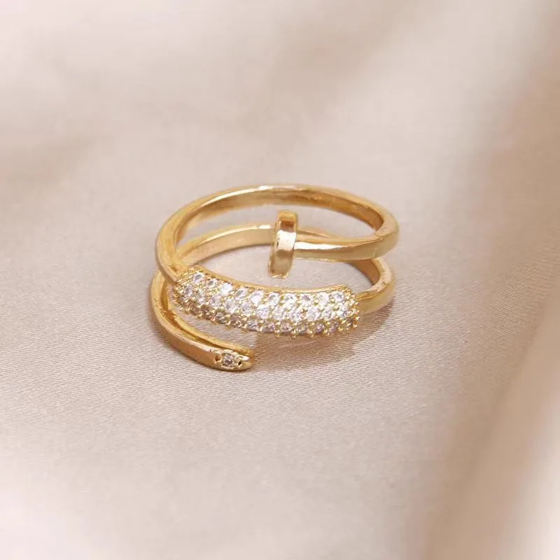 victoria’svogue Micro inlaid zircon three circle nail opening ring, personalized light luxury ring for women, light luxury jewelry