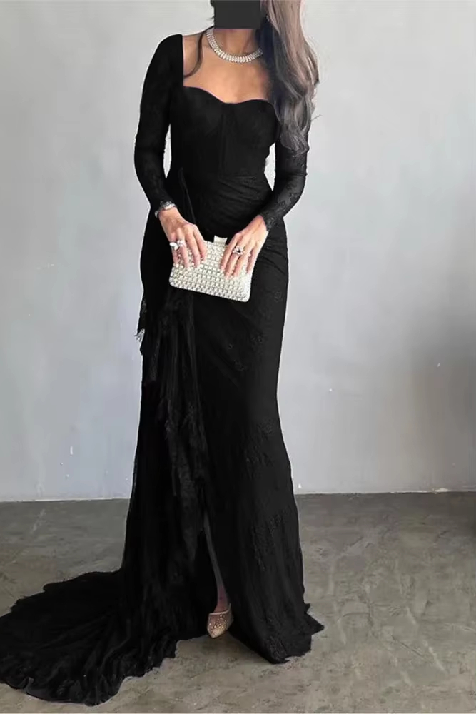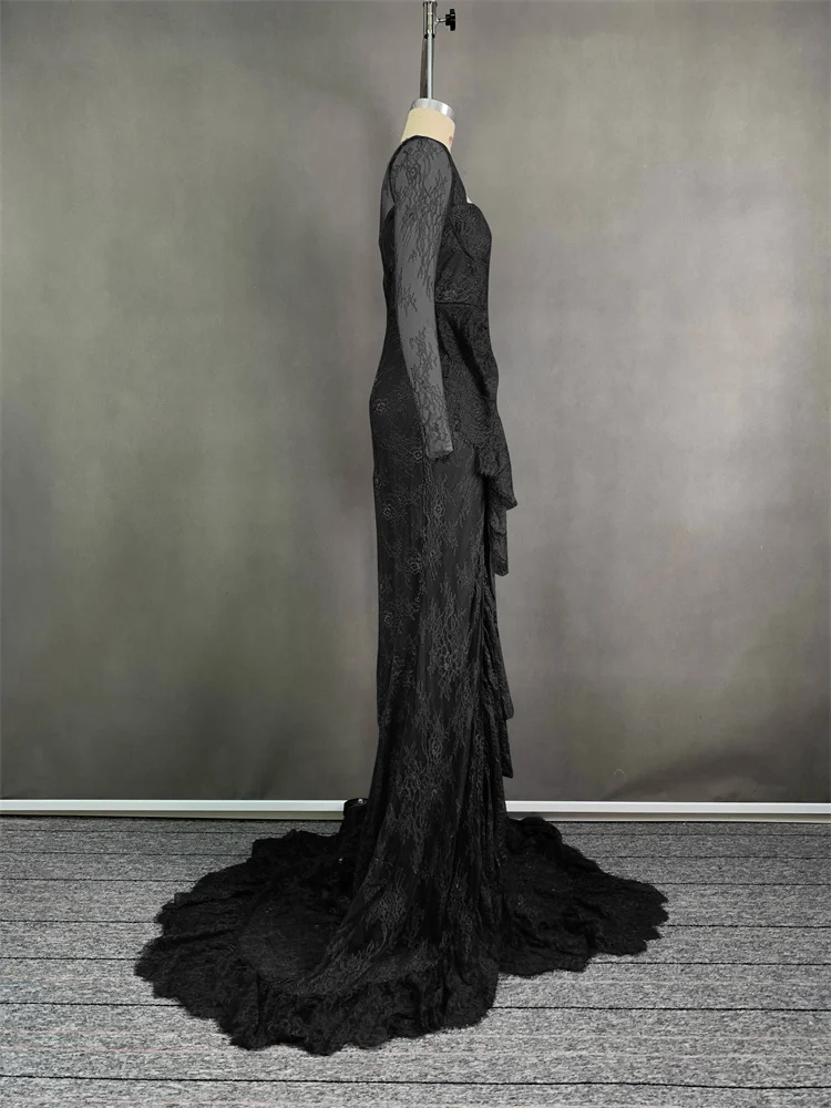 Victoria’s Vogue 2025 Womens Black Wedding Dresses for Party Evening Formal Bodycon Autumn Floor-Length Elegant Woman Lace Long Dress
