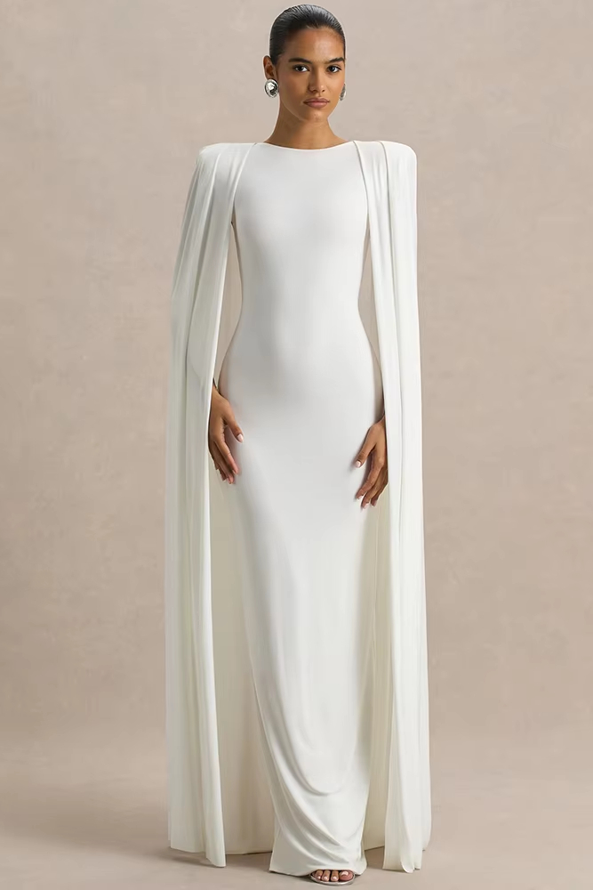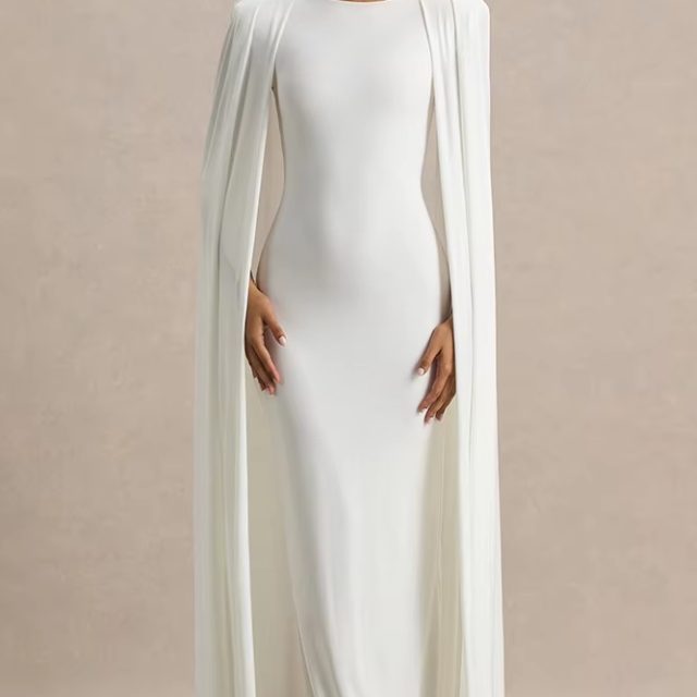 Victoria’s Vouge Cape Sleeve Sexy Maxi Dress Women Gown Elegant Fashion Zipper O Neck High Waist Split Club Party Long Dresses Female