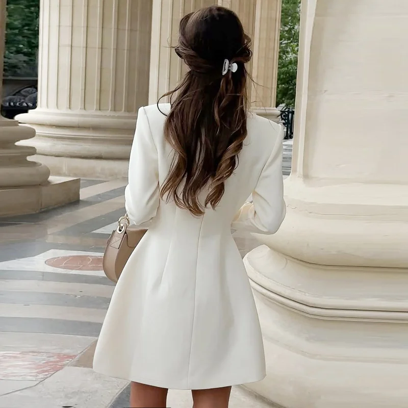 Victoria’s Vogue Half High Collar Long Sleeve Sexy Mini Dress Women Autumn Winter New Single-breasted High Waist Blazer Dresses Female