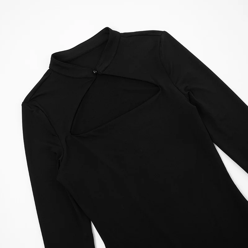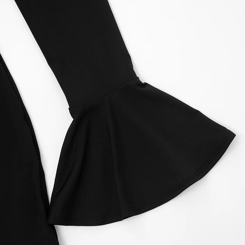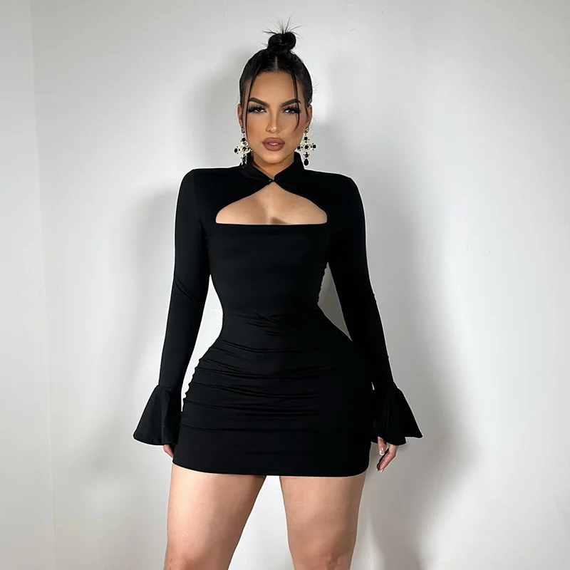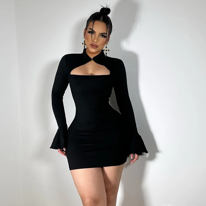 Victoria’s Vogue Hollow Out Flare Long Sleeve Sexy Mini Dress For Women Autumn Winter New Half High Collar High Waist Club Party Dress