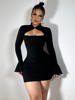 Victoria’s Vogue Hollow Out Flare Long Sleeve Sexy Mini Dress For Women Autumn Winter New Half High Collar High Waist Club Party Dress