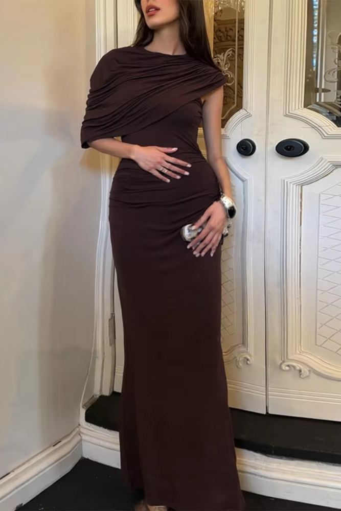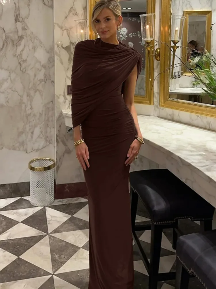 Victoria’s Vogue Irregular Ruched Sexy Maxi Dress For Women Elegant Autumn Inclined Shoulder Pleated Club Party Long Dresses Female