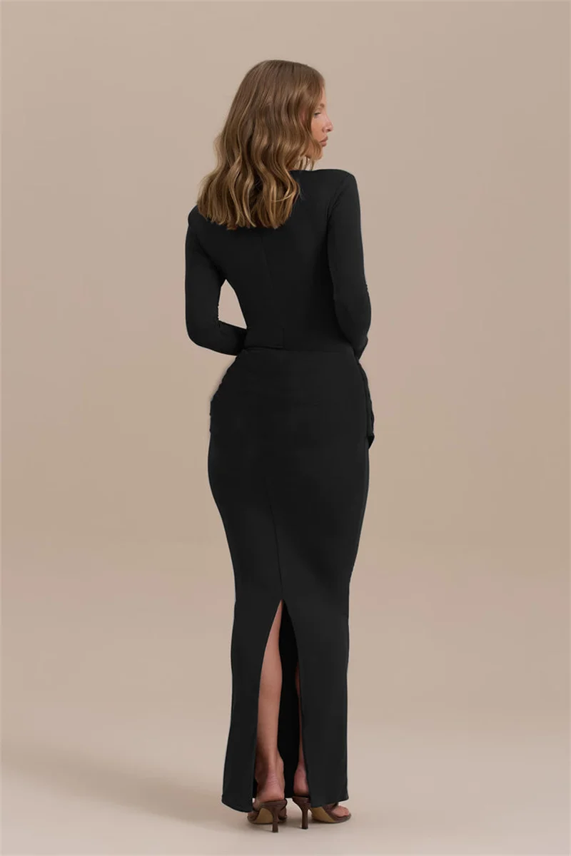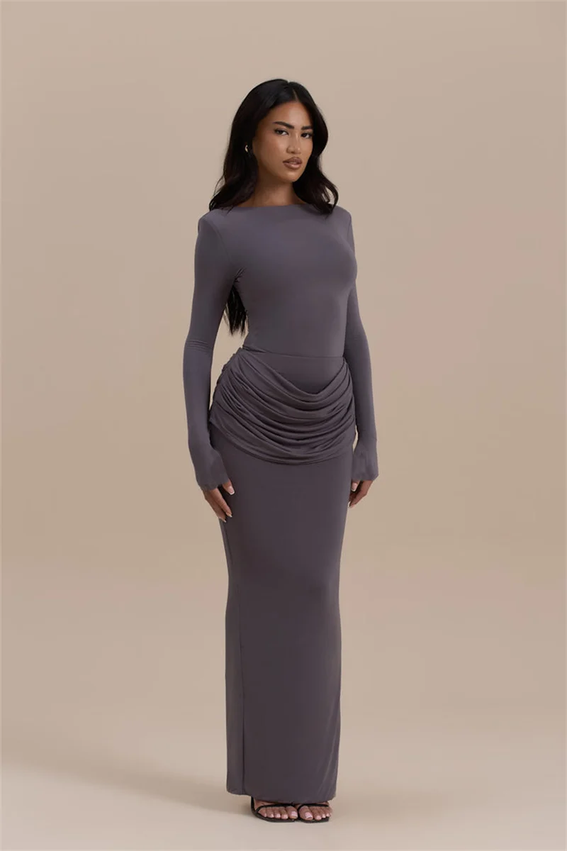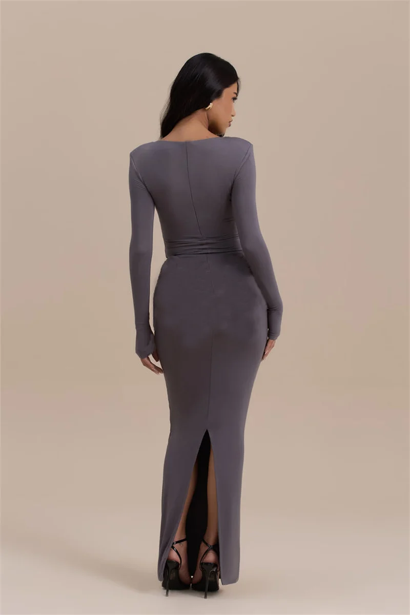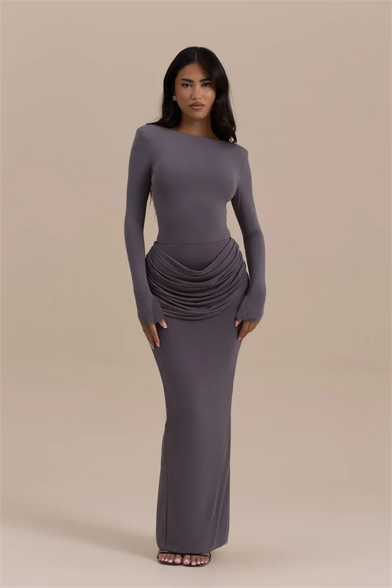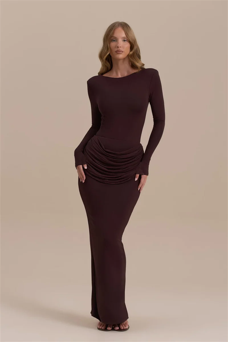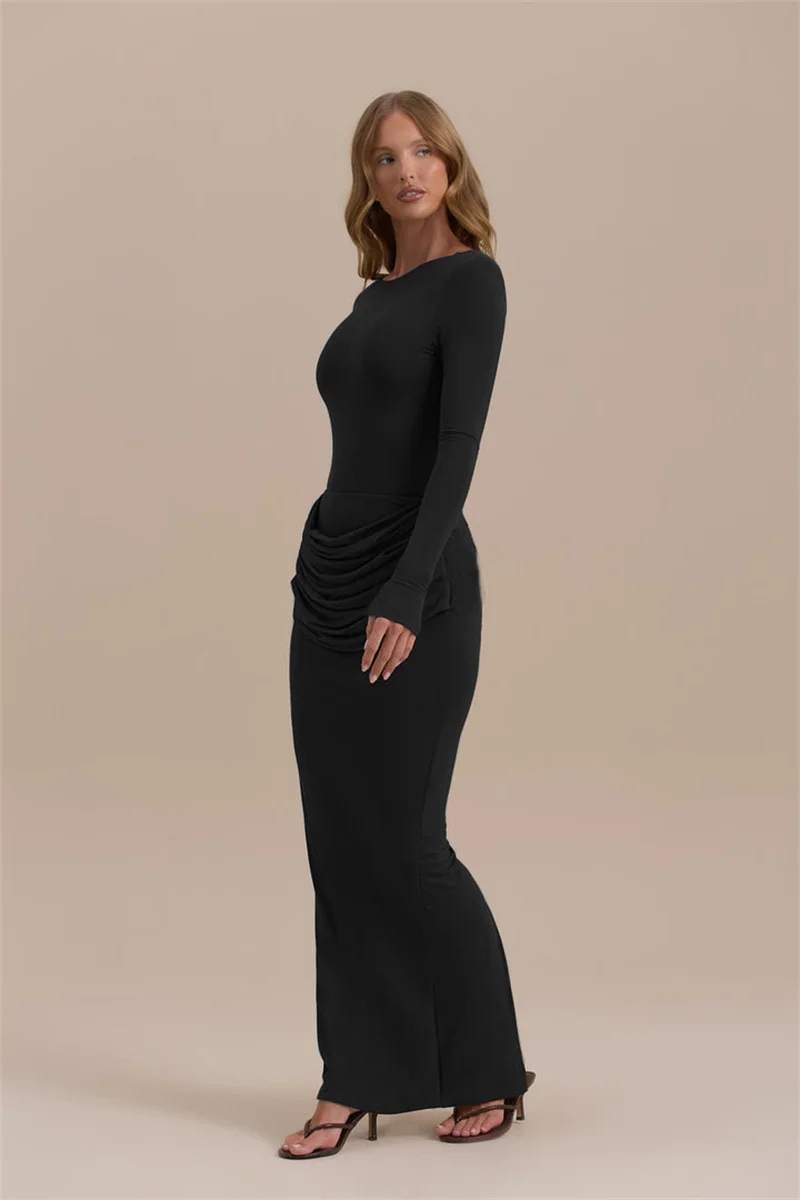 Victoria’s Vogue Long Sleeve Ruched Sexy Maxi Dress For Women Gown Autumn Winter New O Neck High Waist Bodycon Club Party Long Dresses