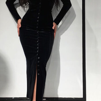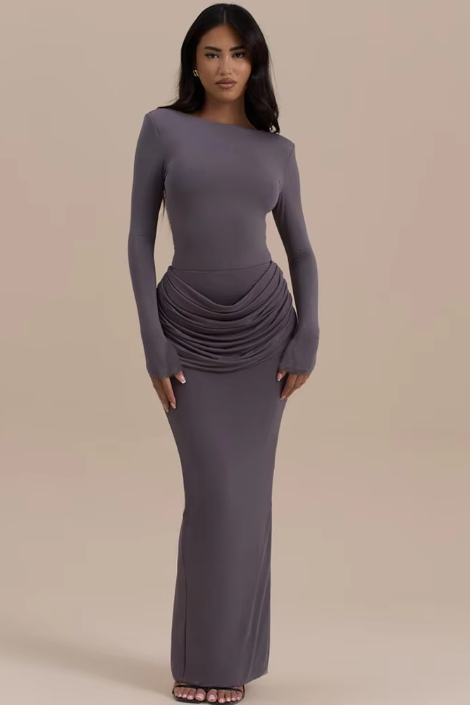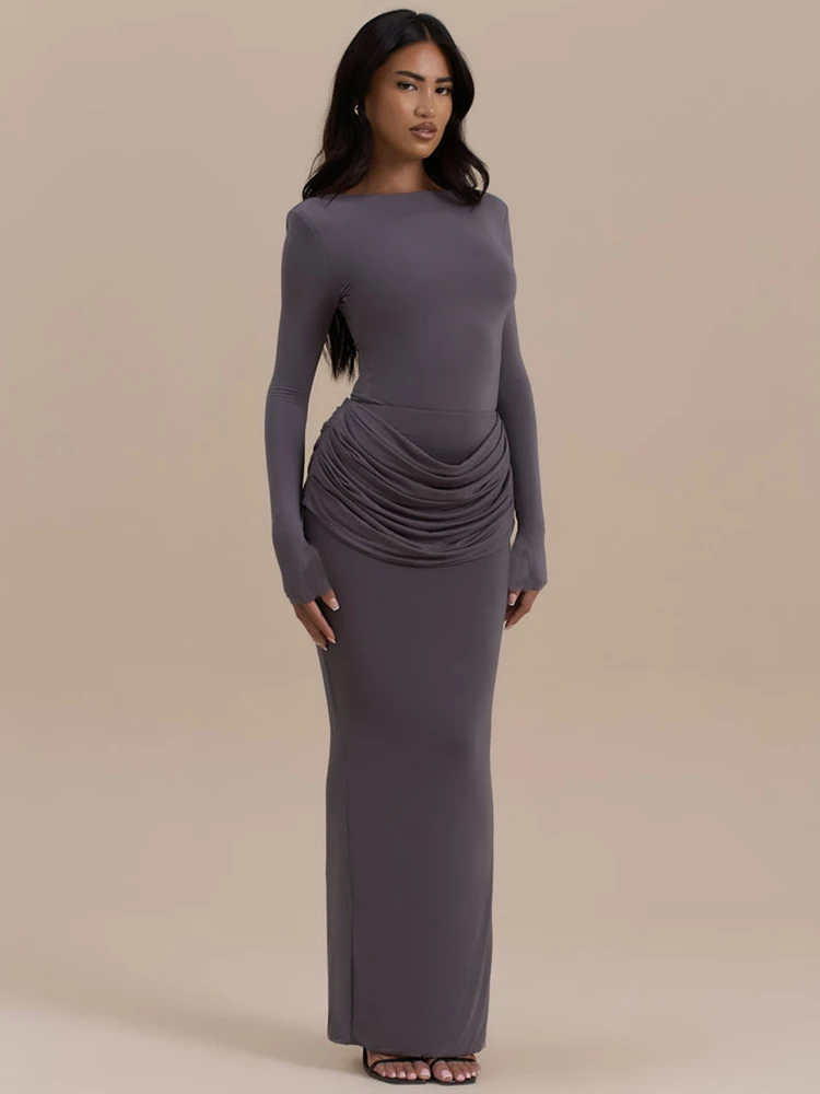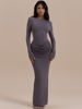 Victoria’s Vogue Long Sleeve Ruched Sexy Maxi Dress For Women Gown Autumn Winter New O Neck High Waist Bodycon Club Party Long Dresses