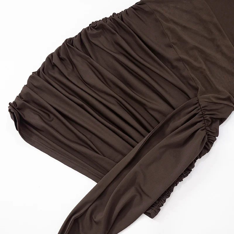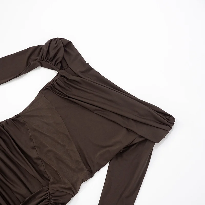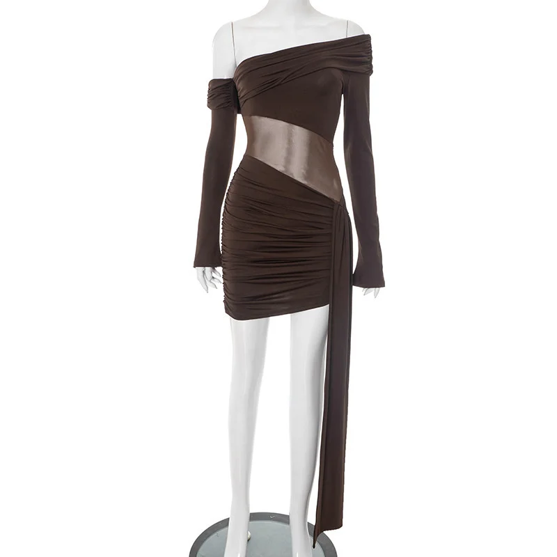 Victoria’s Vogue Off-shoulder Long Sleeve Sexy Mini Dress Women Fashion See Through Strapless Backless Draped Ruched Club Party Dresses