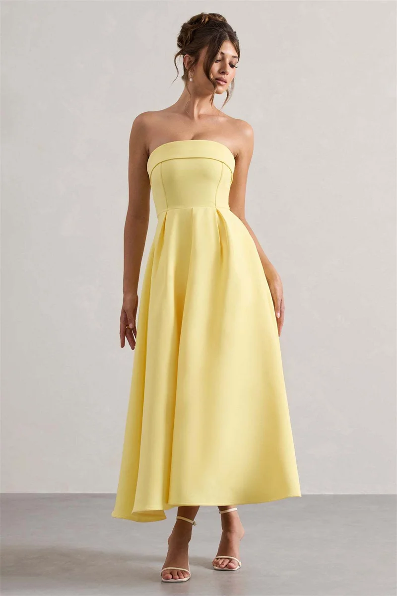 Victoria’s Vogue Off-shoulder Strapless Sexy Midi Dress Women Fashion Elegant Sleeveless Backless High Waist A-line Club Party Dress New