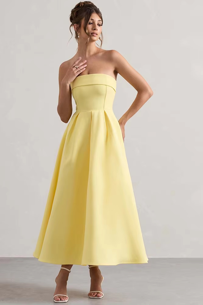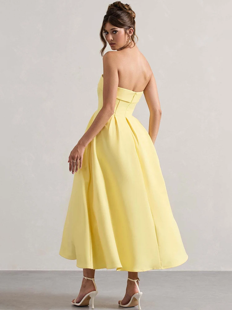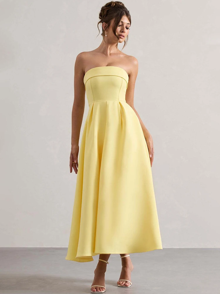 Victoria’s Vogue Off-shoulder Strapless Sexy Midi Dress Women Fashion Elegant Sleeveless Backless High Waist A-line Club Party Dress New