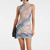 Victoria’s Vogue Striped Print Patchwork Hips Dress Woman Spring Stand Collar Elegant Party Dresses Summer Sleeveless Slim Mini Dress