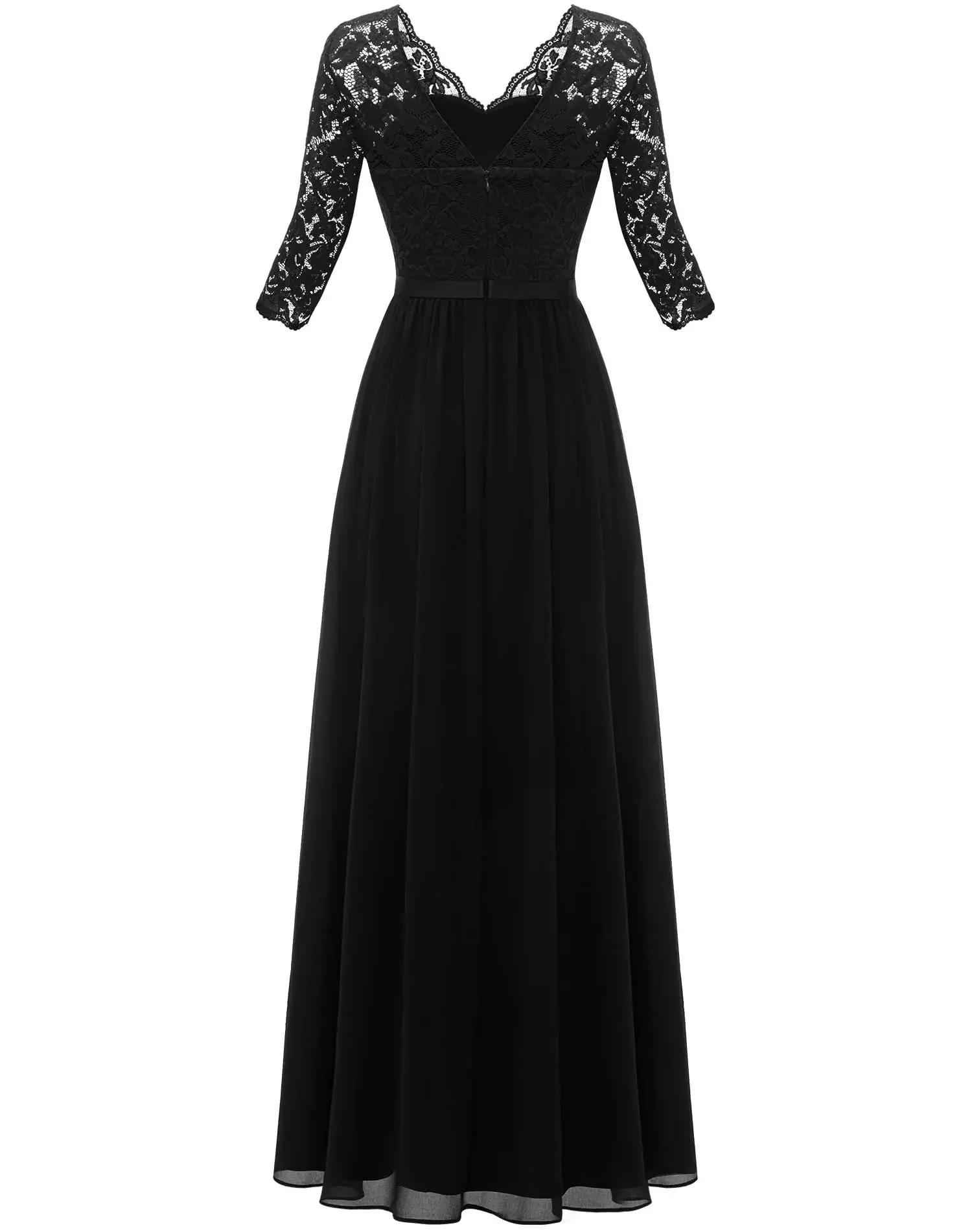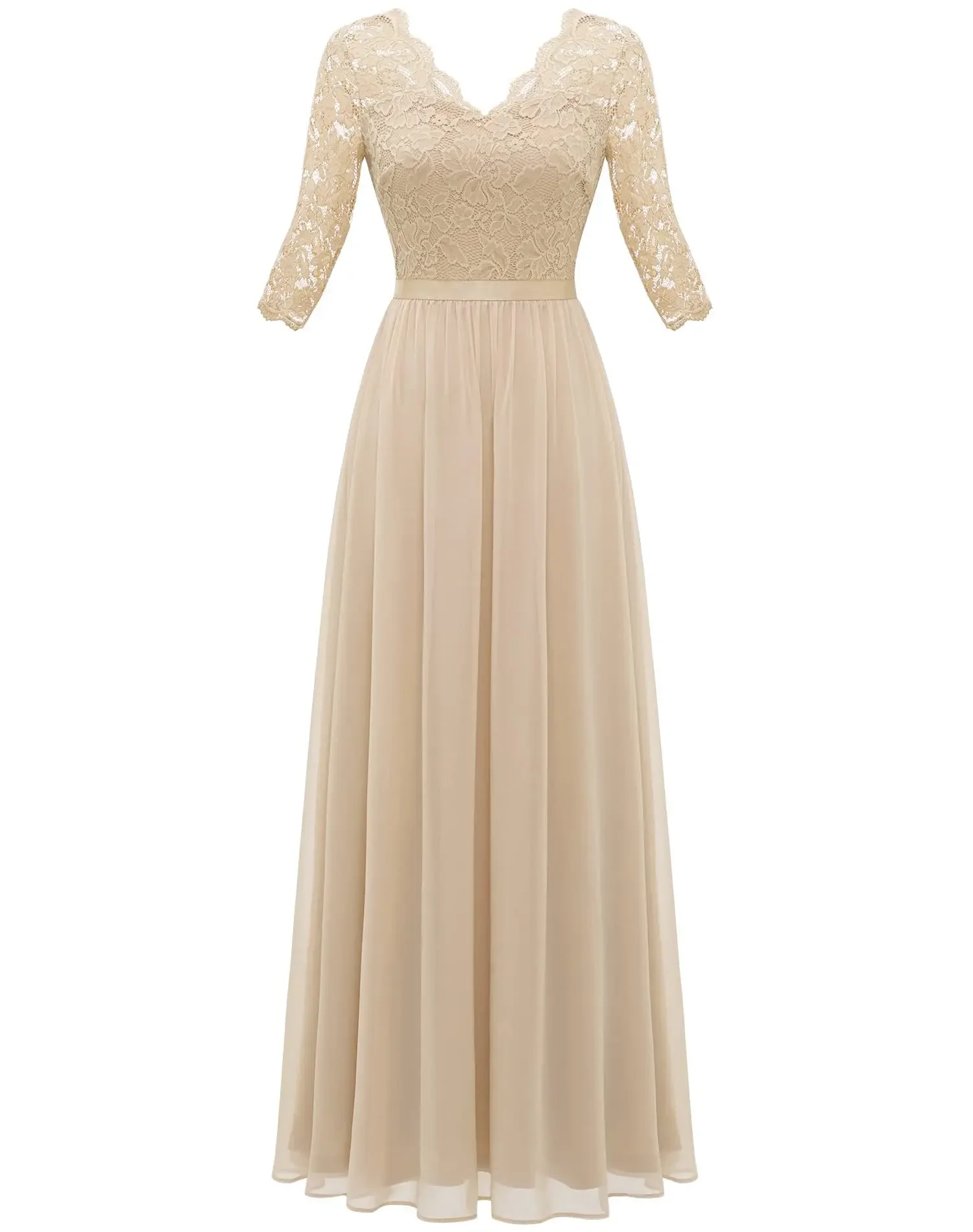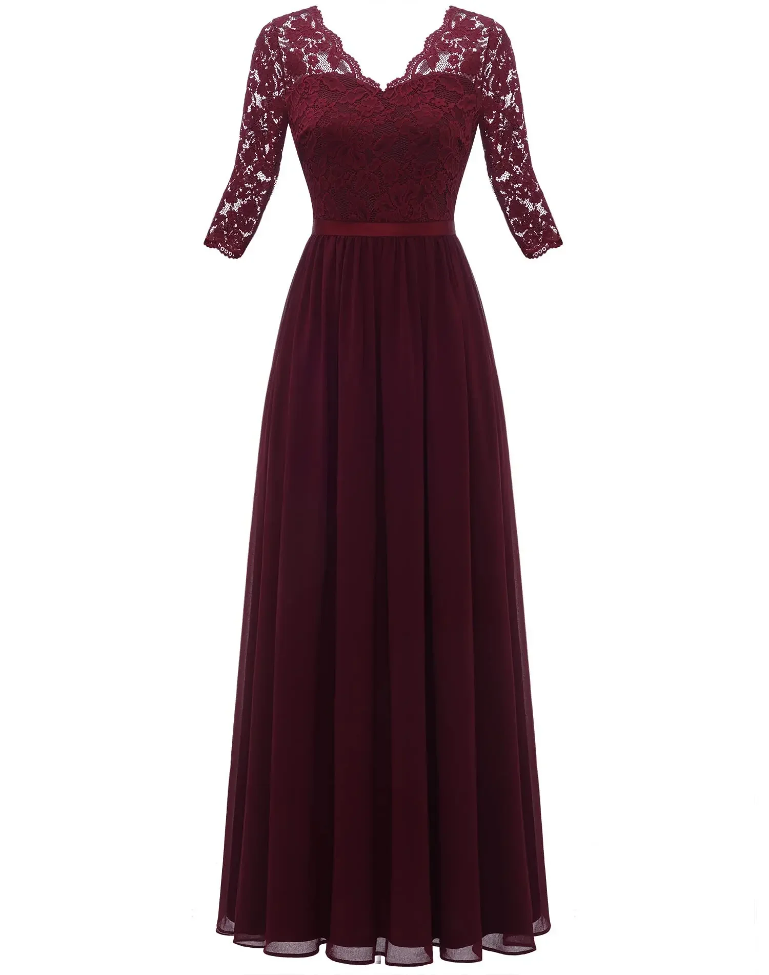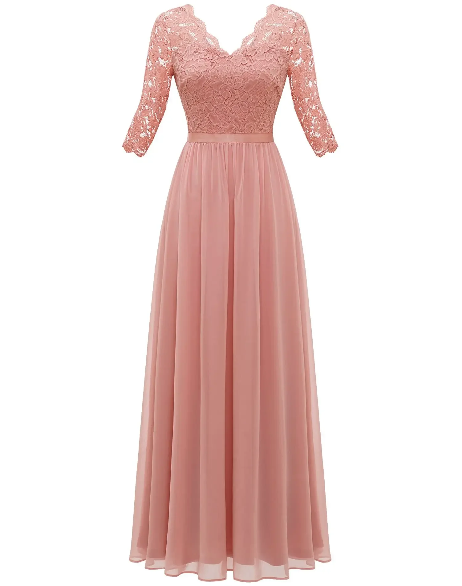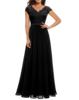 Victoria’s Vogue New 6-Color 5-Size Lace Splicing Long Waist-Cinching Elegant Dress Floor-Length V-Neck Polyester Fiber Evening Gown Dress