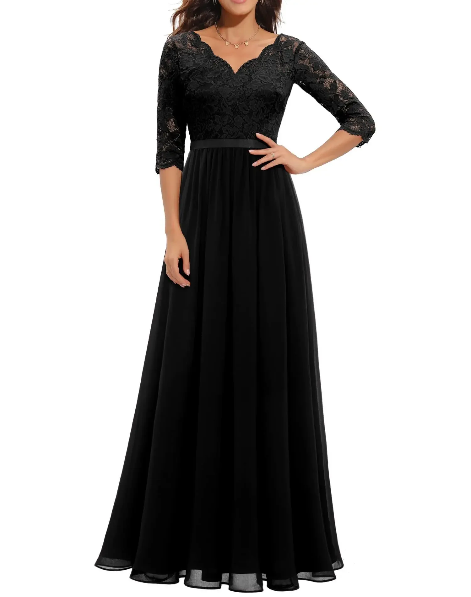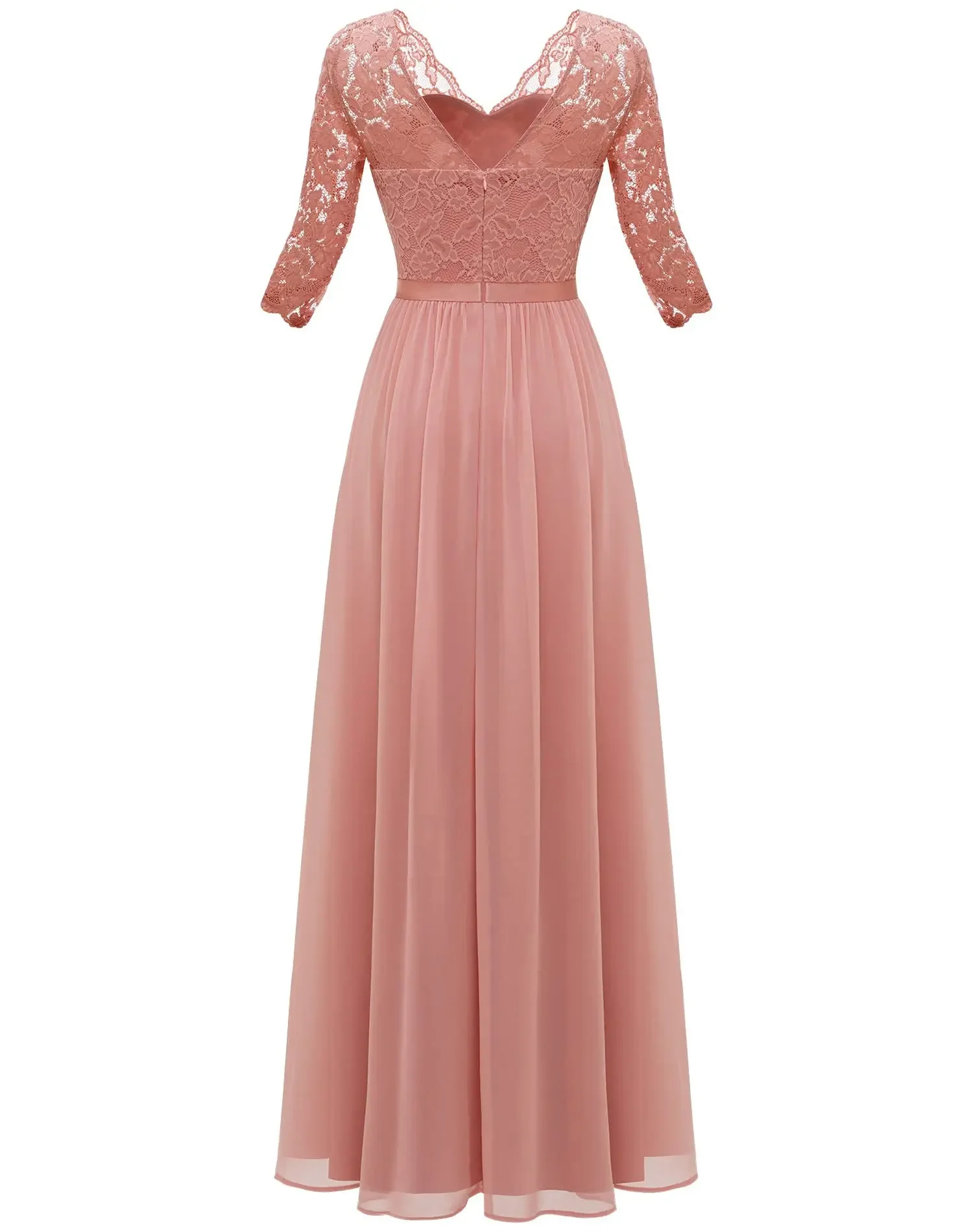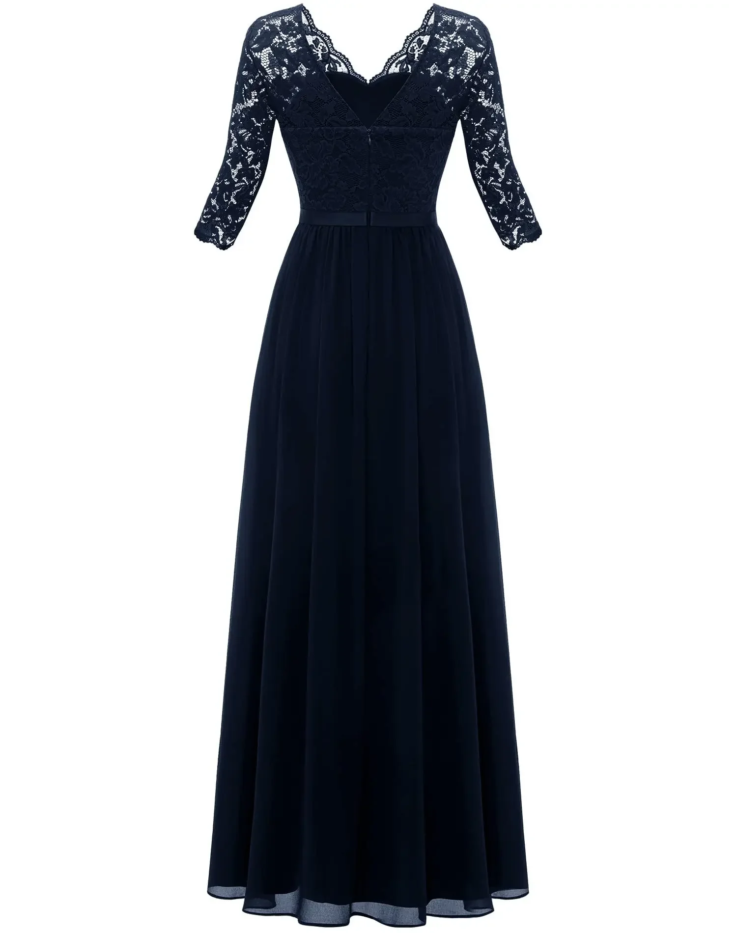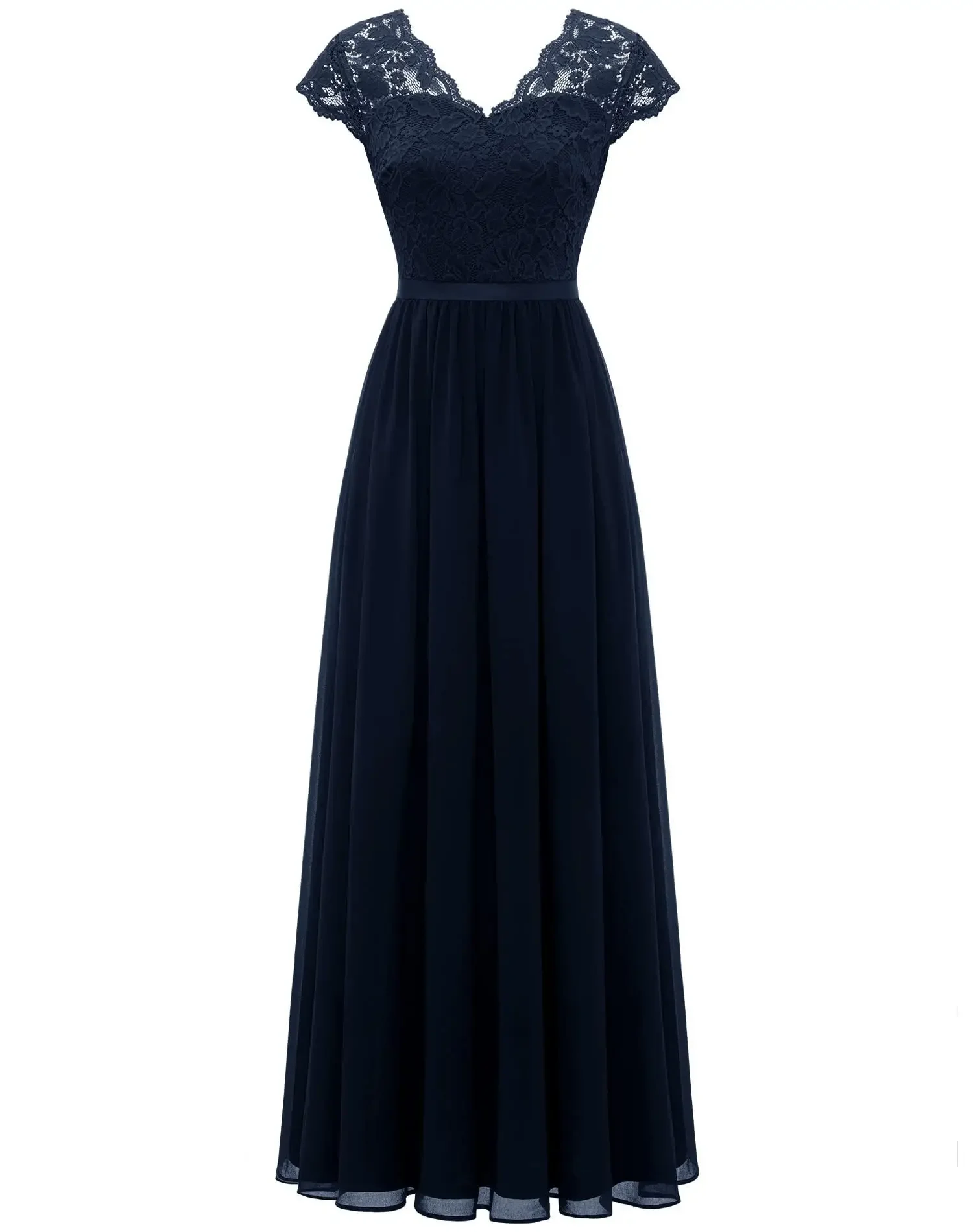 Victoria’s Vogue New 6-Color 5-Size Lace Splicing Long Waist-Cinching Elegant Dress Floor-Length V-Neck Polyester Fiber Evening Gown Dress