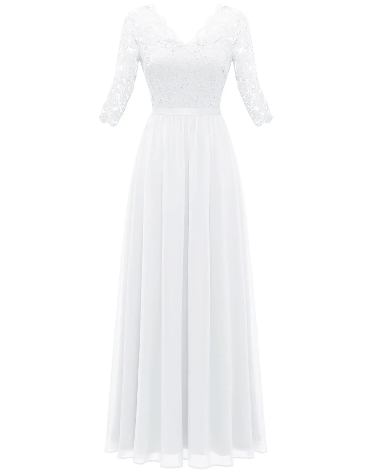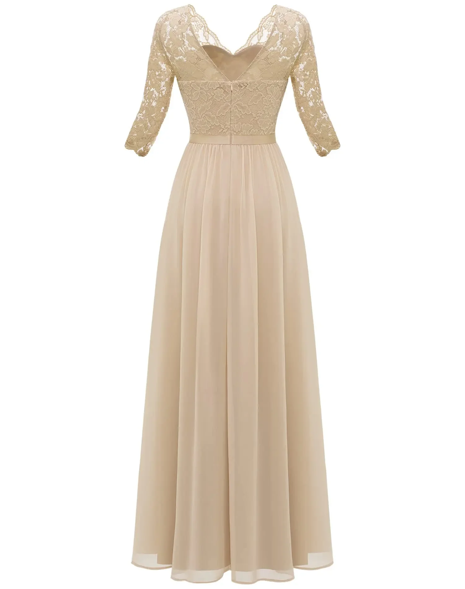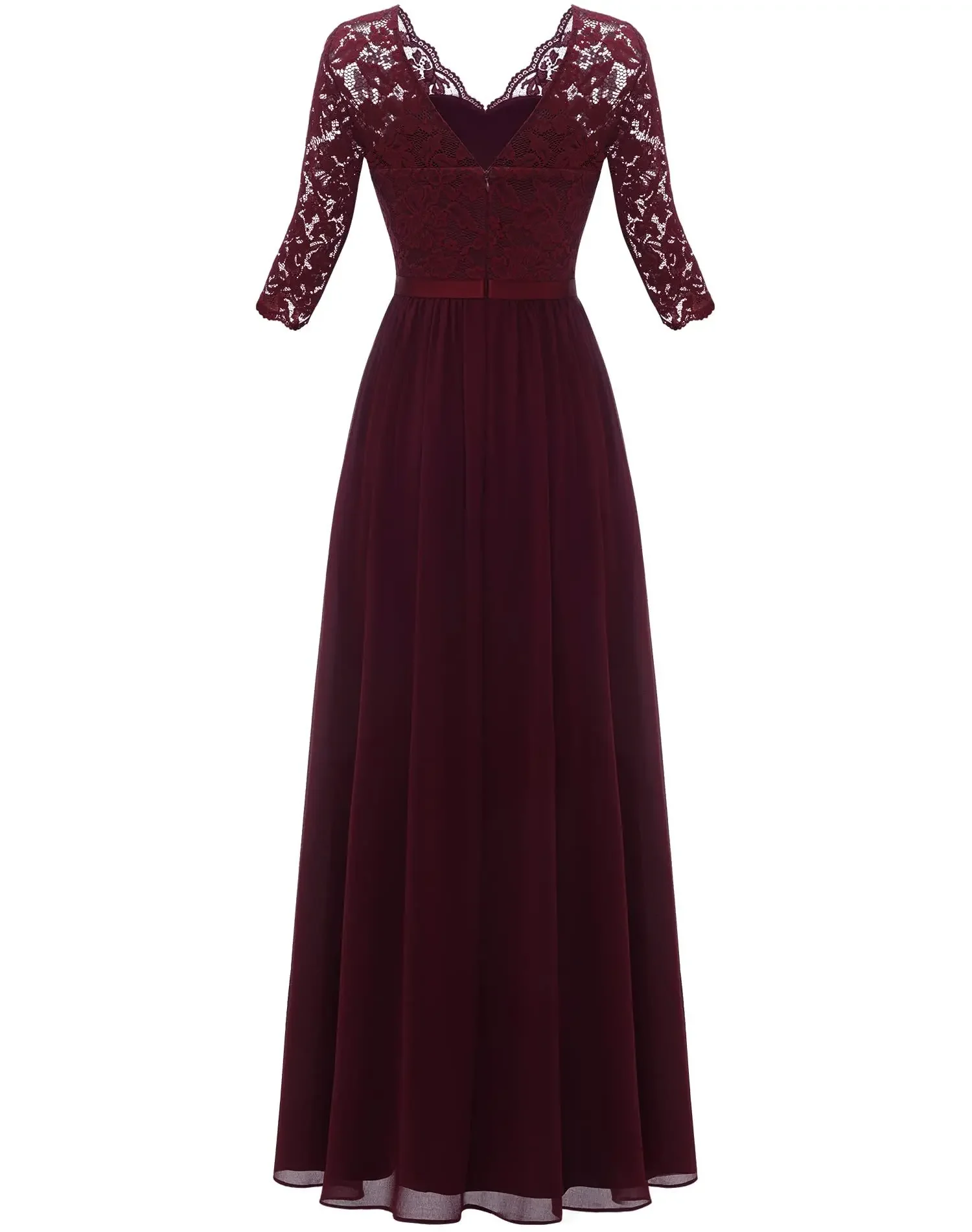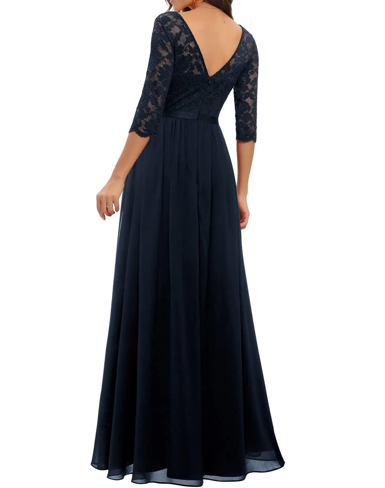 Victoria’s Vogue New 6-Color 5-Size Lace Splicing Long Waist-Cinching Elegant Dress Floor-Length V-Neck Polyester Fiber Evening Gown Dress