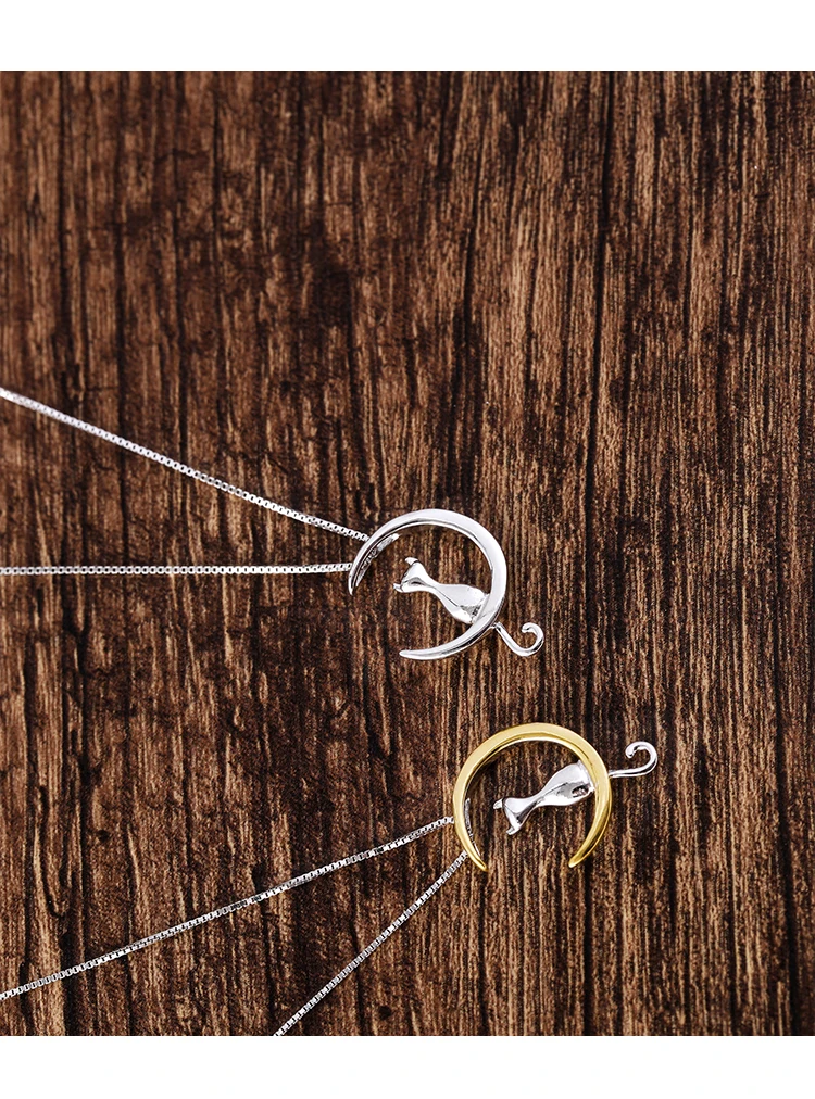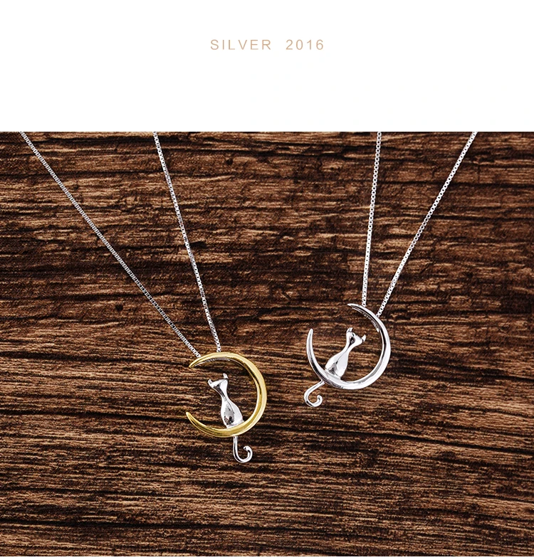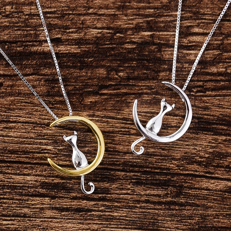 victoria’svogue 2021 New 925 Sterling Silver moon cat Necklaces Pendant Fashion Sterling Silver Jewelry Statement for Women Bijoux