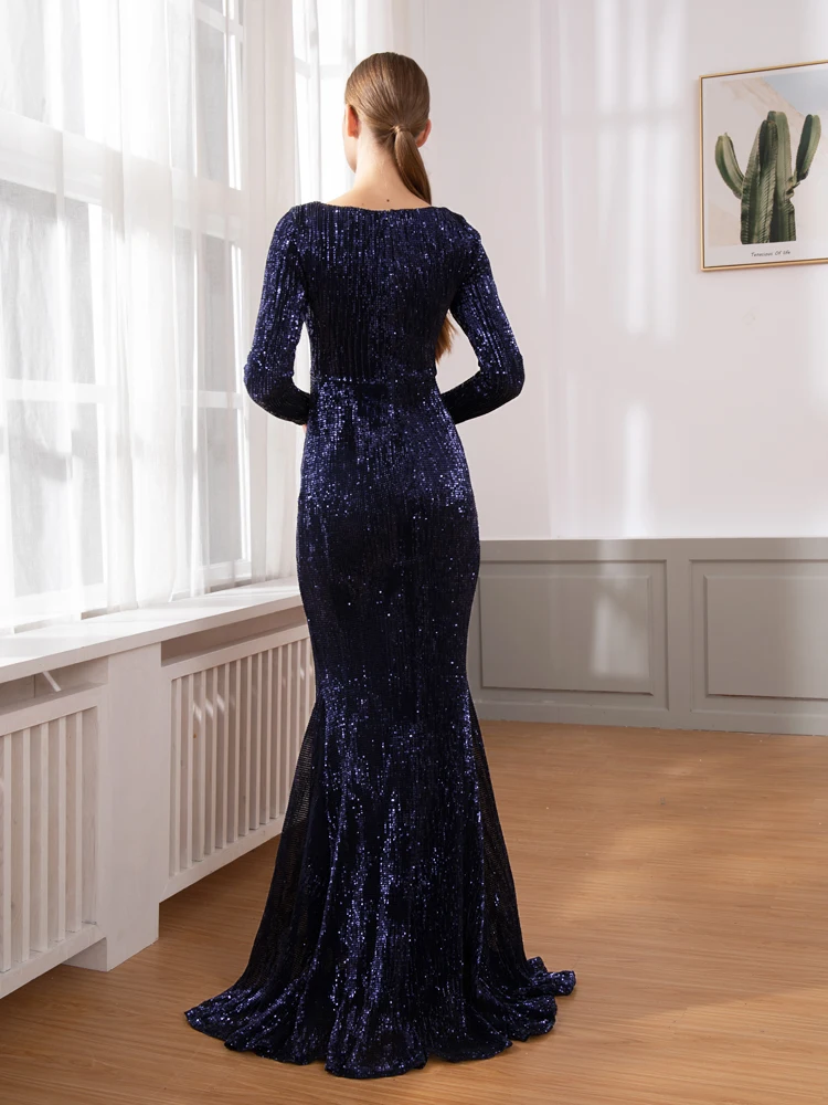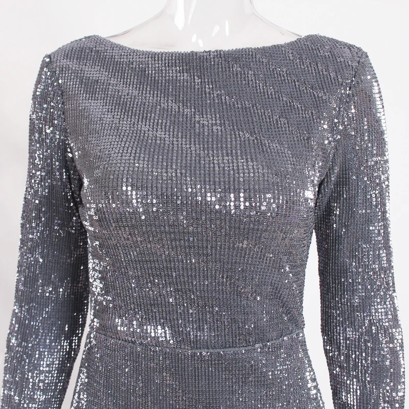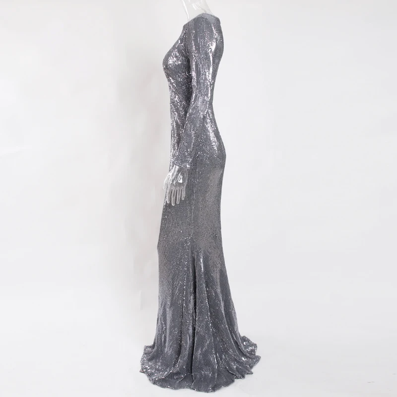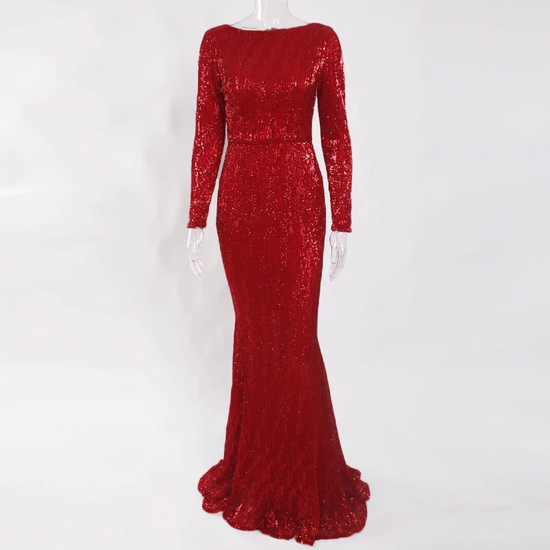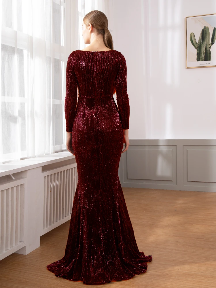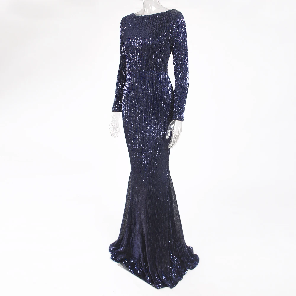 victoria’svogue 2021 New Burgundy Navy Long Sequined Maxi Dres Sleeve O Neck Shiny Party Dress Full Length Lining Bodycon Back Zipper Autumn Dress