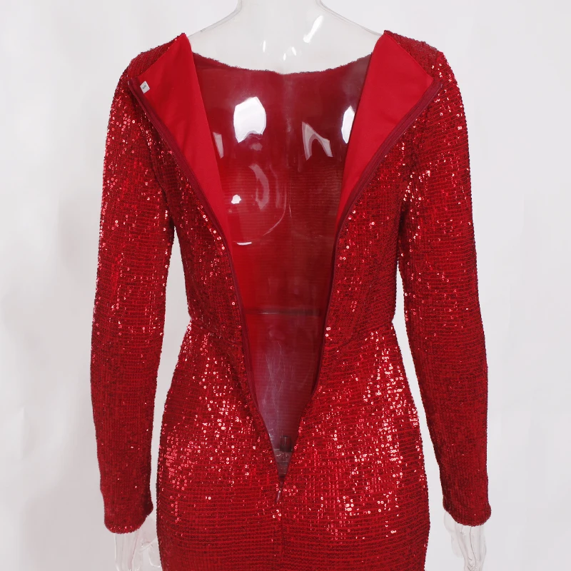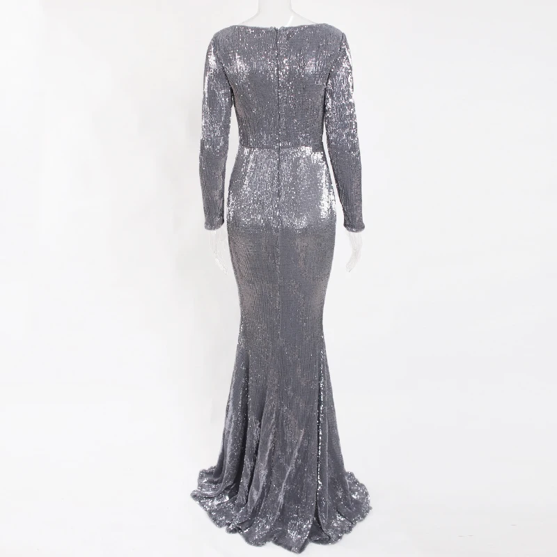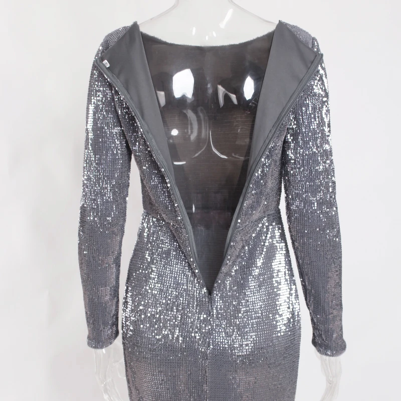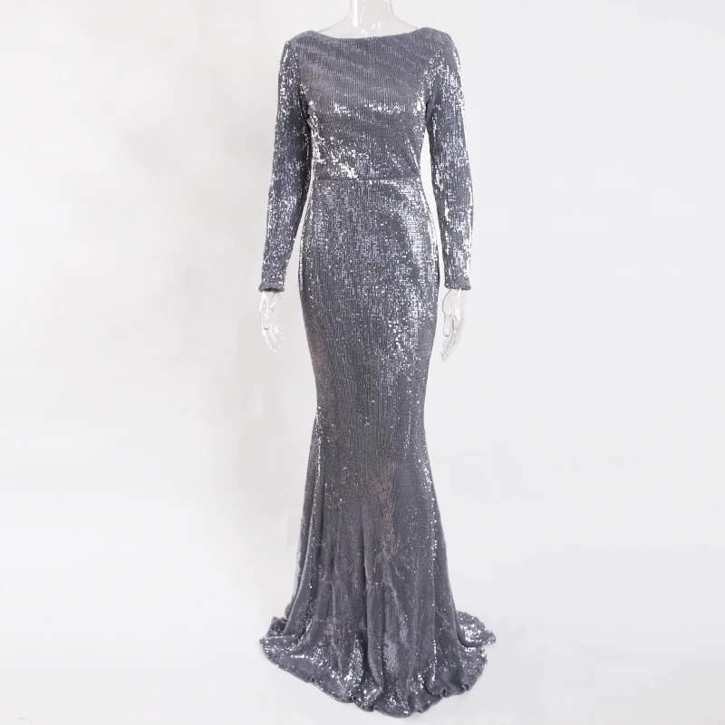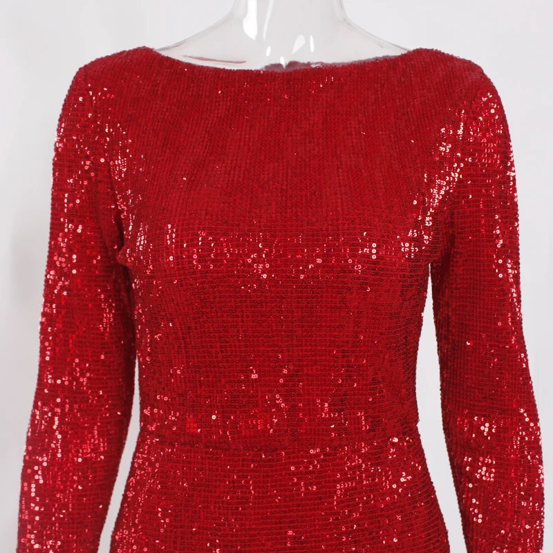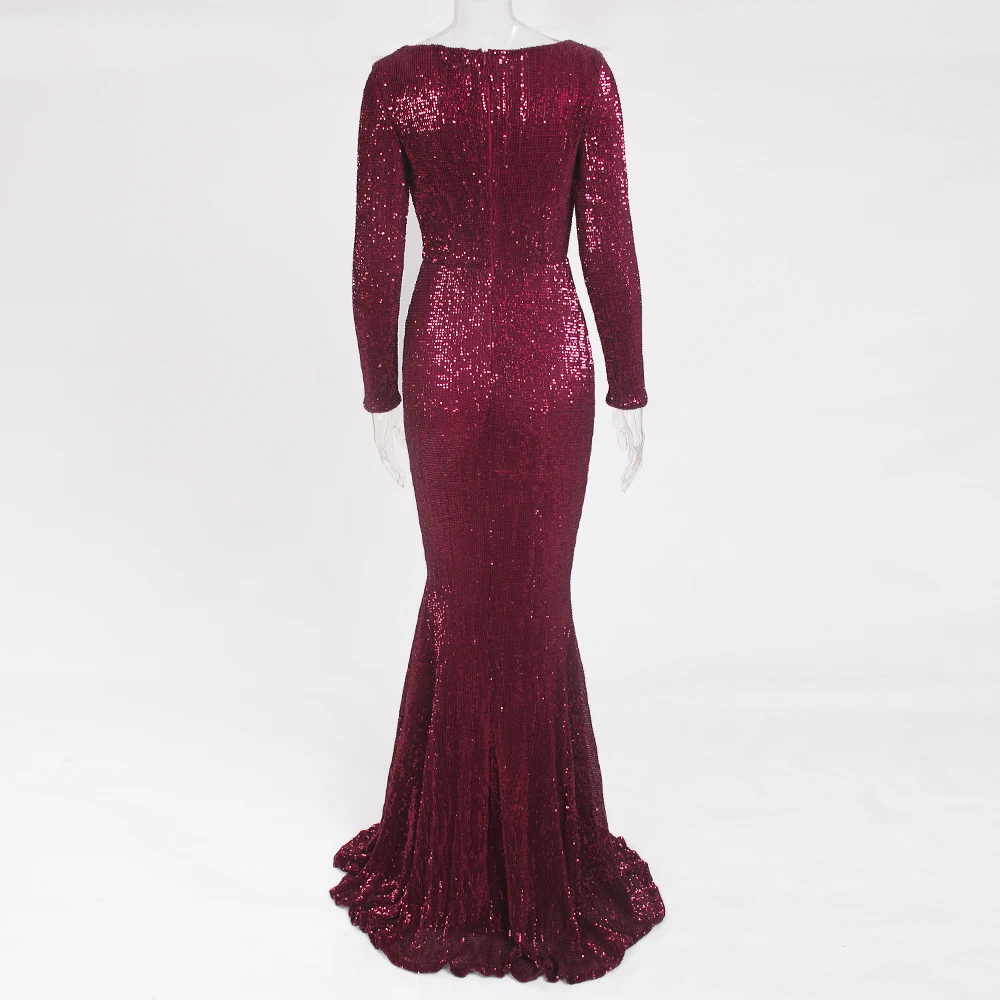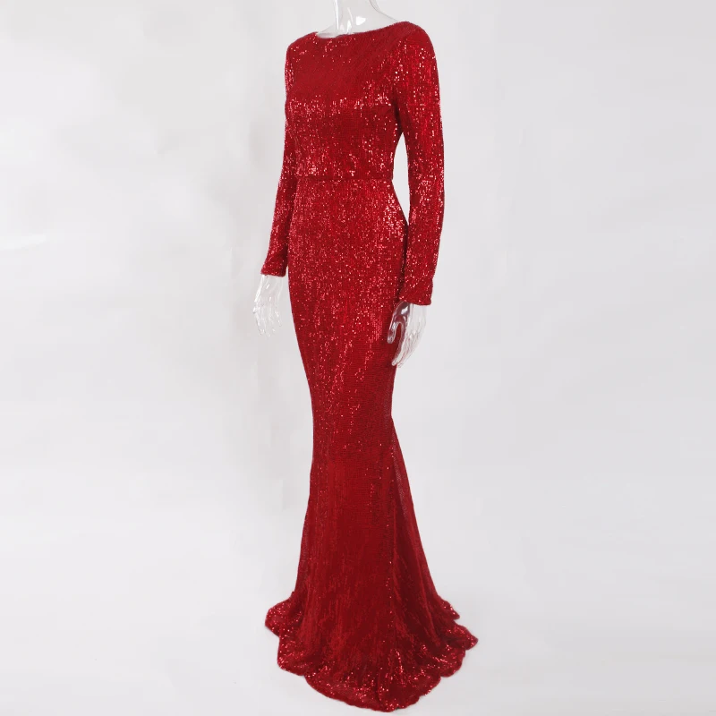 victoria’svogue 2021 New Burgundy Navy Long Sequined Maxi Dres Sleeve O Neck Shiny Party Dress Full Length Lining Bodycon Back Zipper Autumn Dress