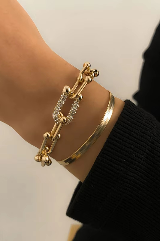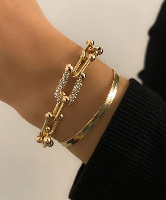 victoria’svogue New Extendable Gold Color Metal Bracelet for Women Girls Snake Chain Hoop Link Ins Style Bracelet Jewelry Set