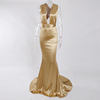 victoria’svogue 2021 NEW Gold Sexy Strapless Bodycon Mermaid Party Dress Sleeveless Floor Length Satin Dress Open Back Dress DIY Tie-strap