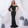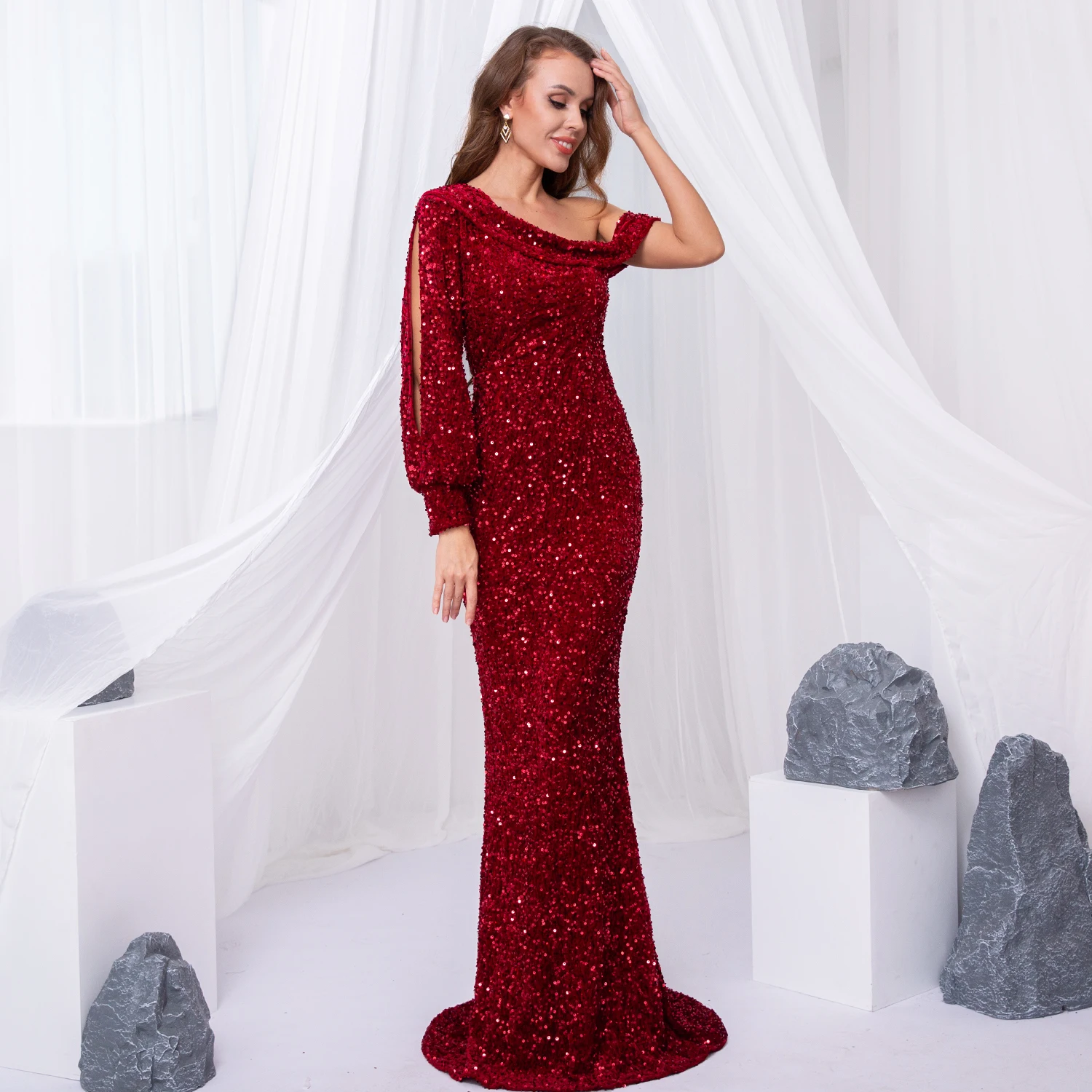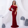 victoria’svogue 2021 NEW One Split Shoulder Sparkles Stretch Sequin Evening Night Dress Off Shoulder Mermaid Floor Length Bobydon Party Dress Red