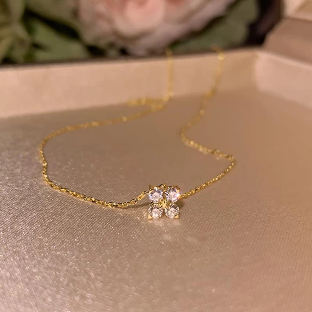 Victoria’s Vouge New Stainless Steel Zircon Necklaces for Women 18K Gold Plated Four Leaf Grass Collar Chain Necklace Luxury Jewelry