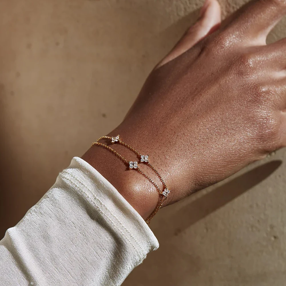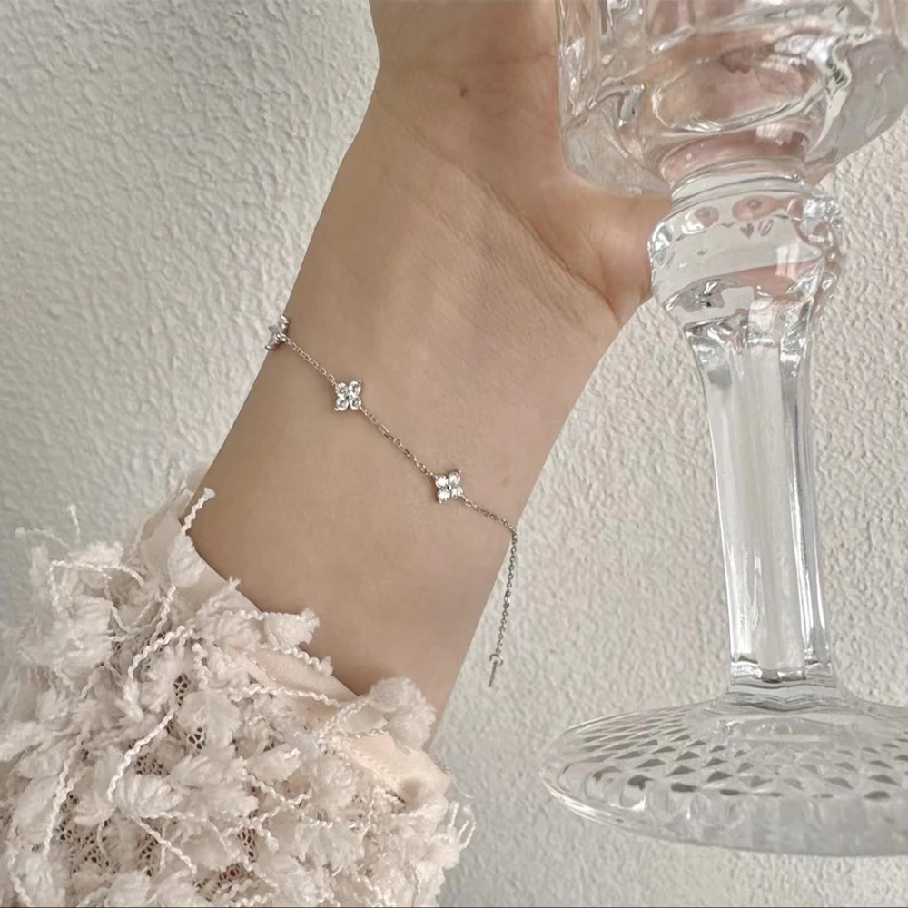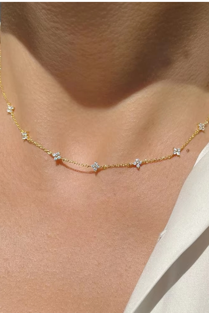 Victoria’s Vouge New Stainless Steel Zircon Necklaces for Women 18K Gold Plated Four Leaf Grass Collar Chain Necklace Luxury Jewelry