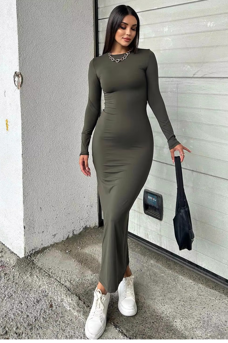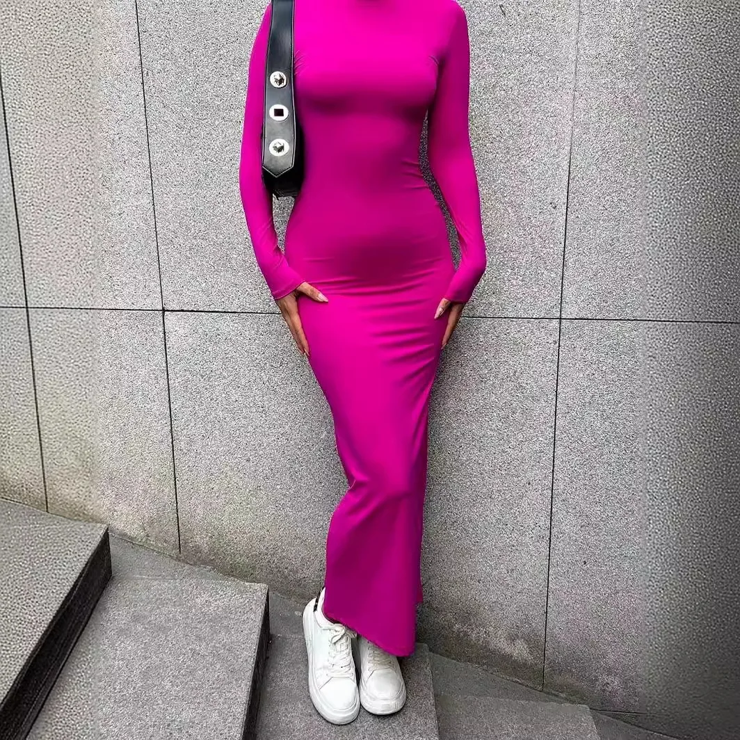 Victoria’s Vouge New Tight Women’s Autumn Dress With Long Sleeves Robe Slim Women’s Long Skirt Basic Solid Color Autumn O-neck Party Vest Robe