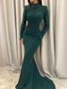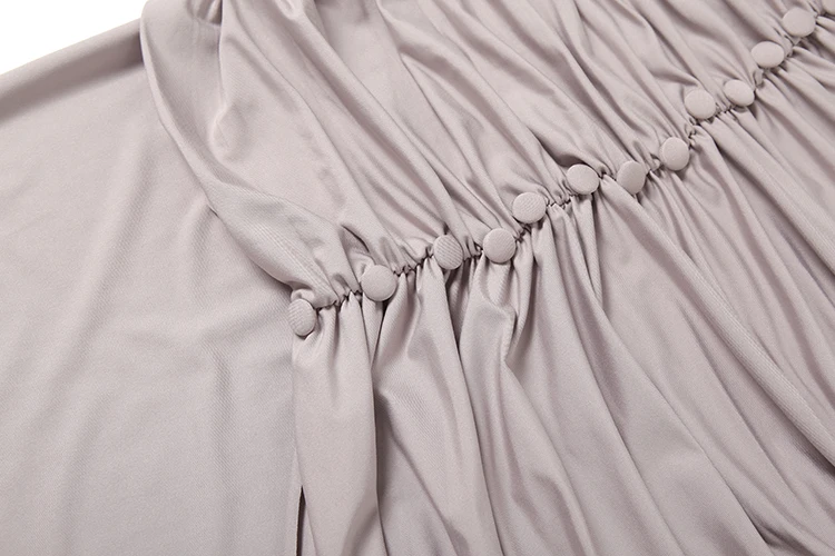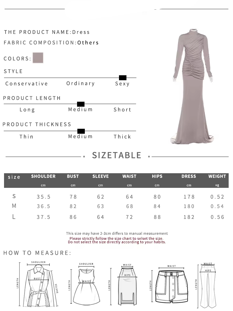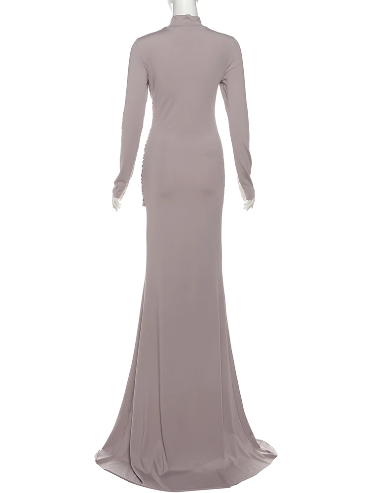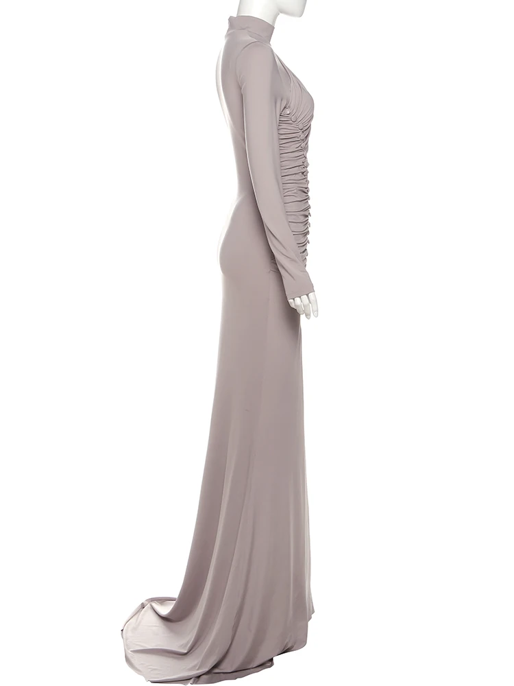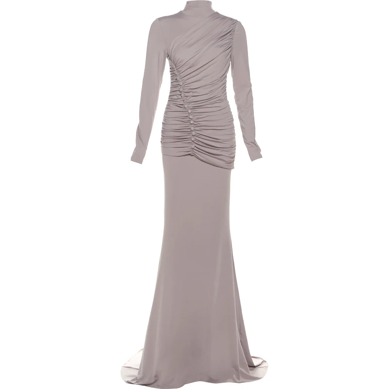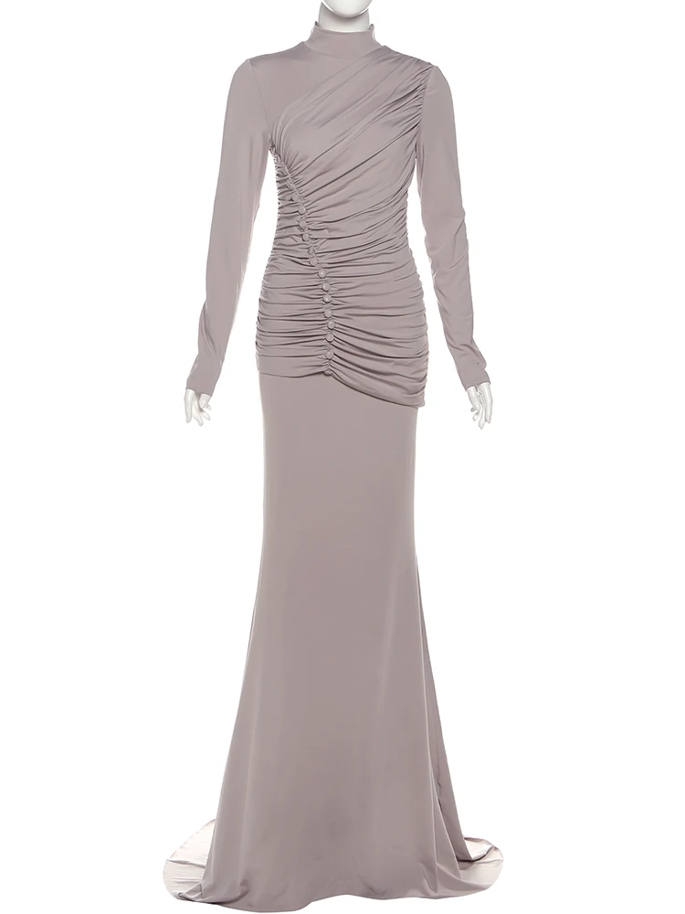 Victoria’s Vogue Ruched Maxi Dresses Woman Button Decoration Autumn New Style Turtleneck Full Sleeve High Waist Elegant Skinny Vestidos