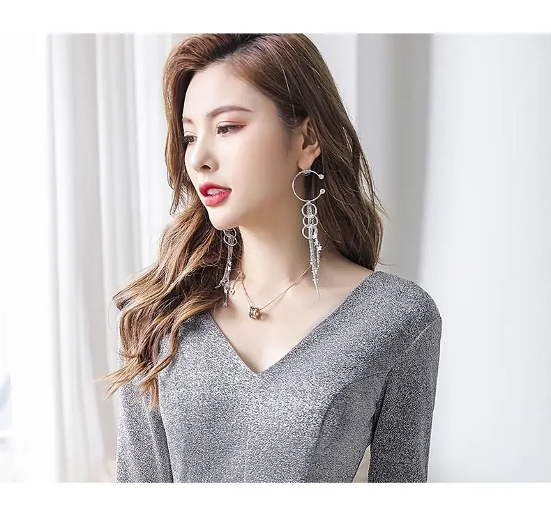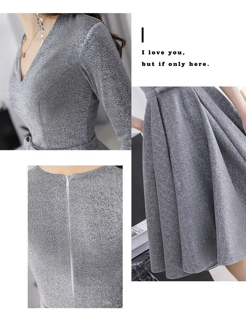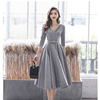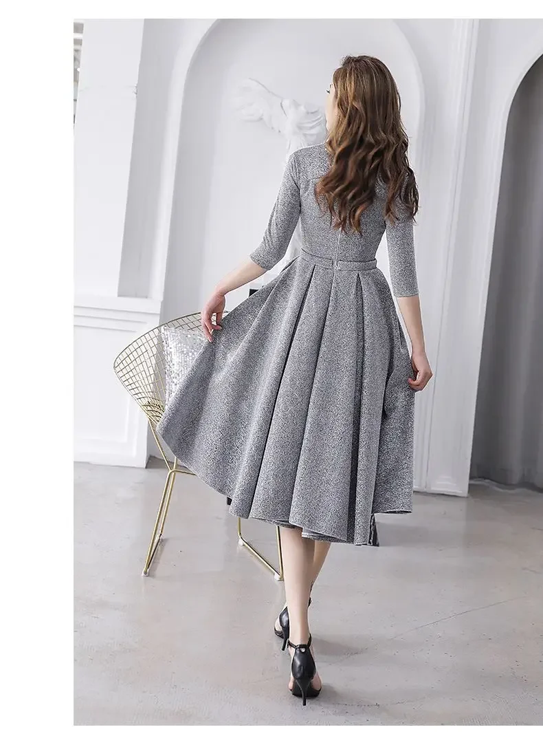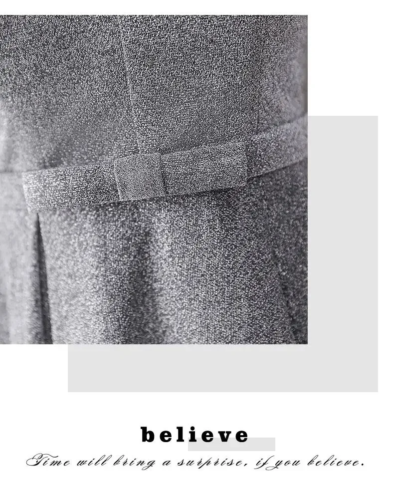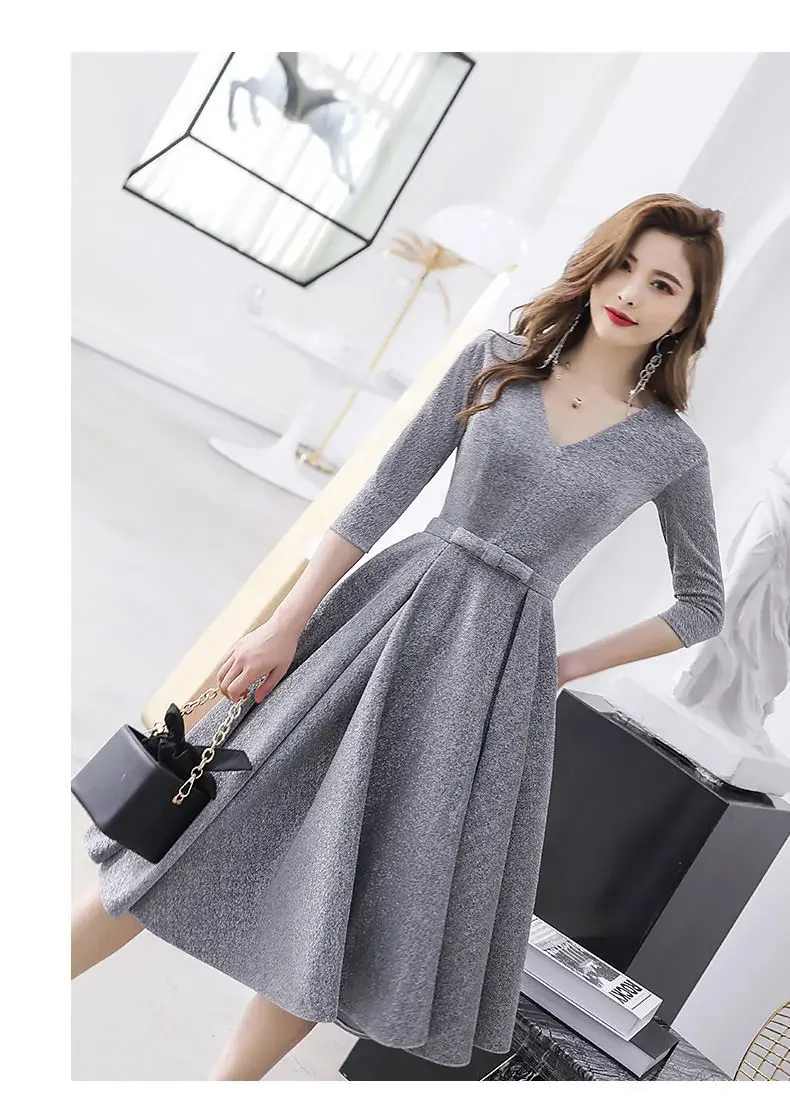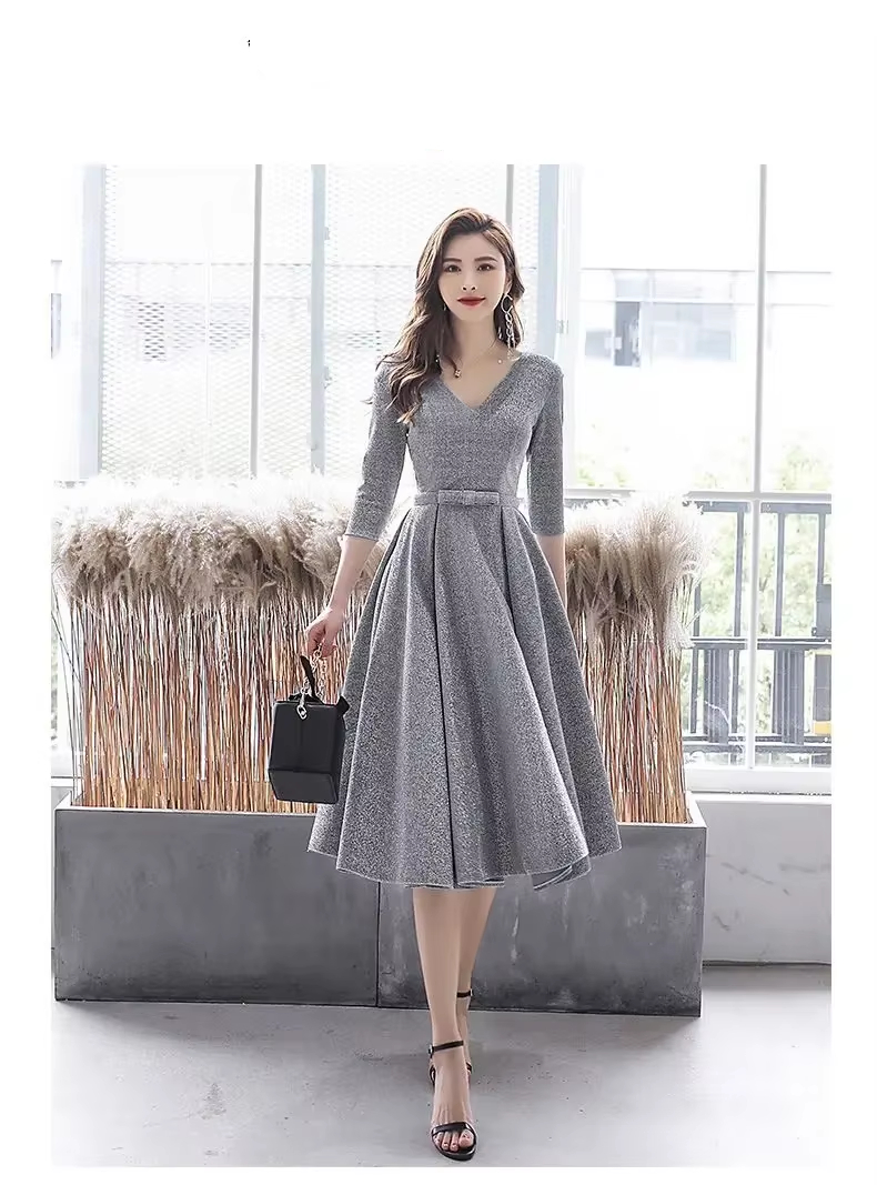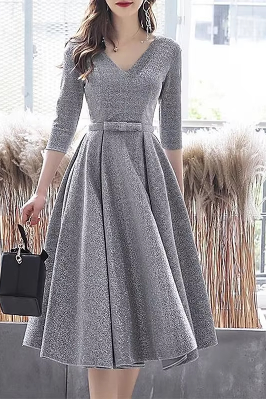 Victoria’s Vogue Luxury Solid Shoulder Straight Three Quarter Elegant Dress V-Neck Fashion High Waist Bow Pleats Prom Slim Evening Dresses
